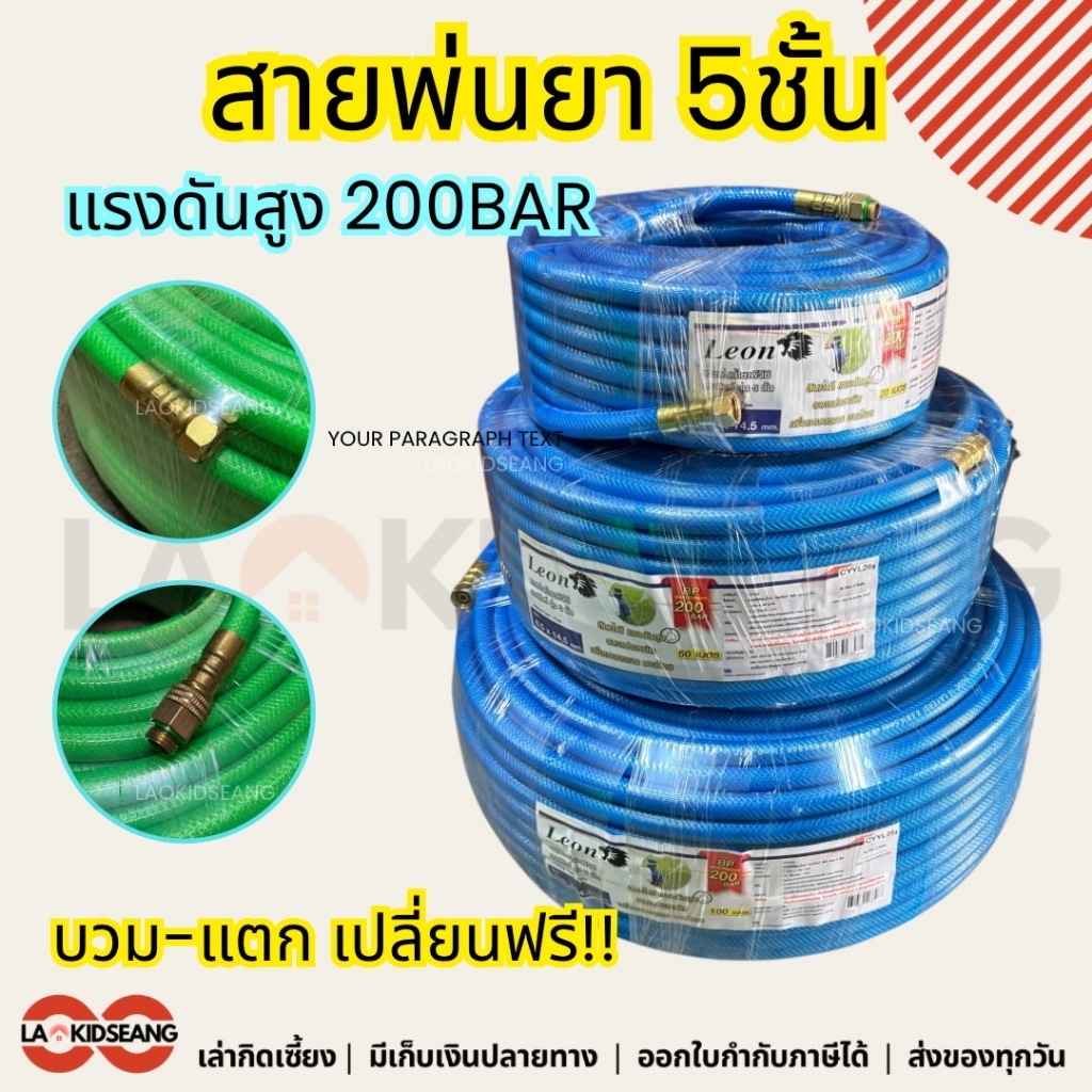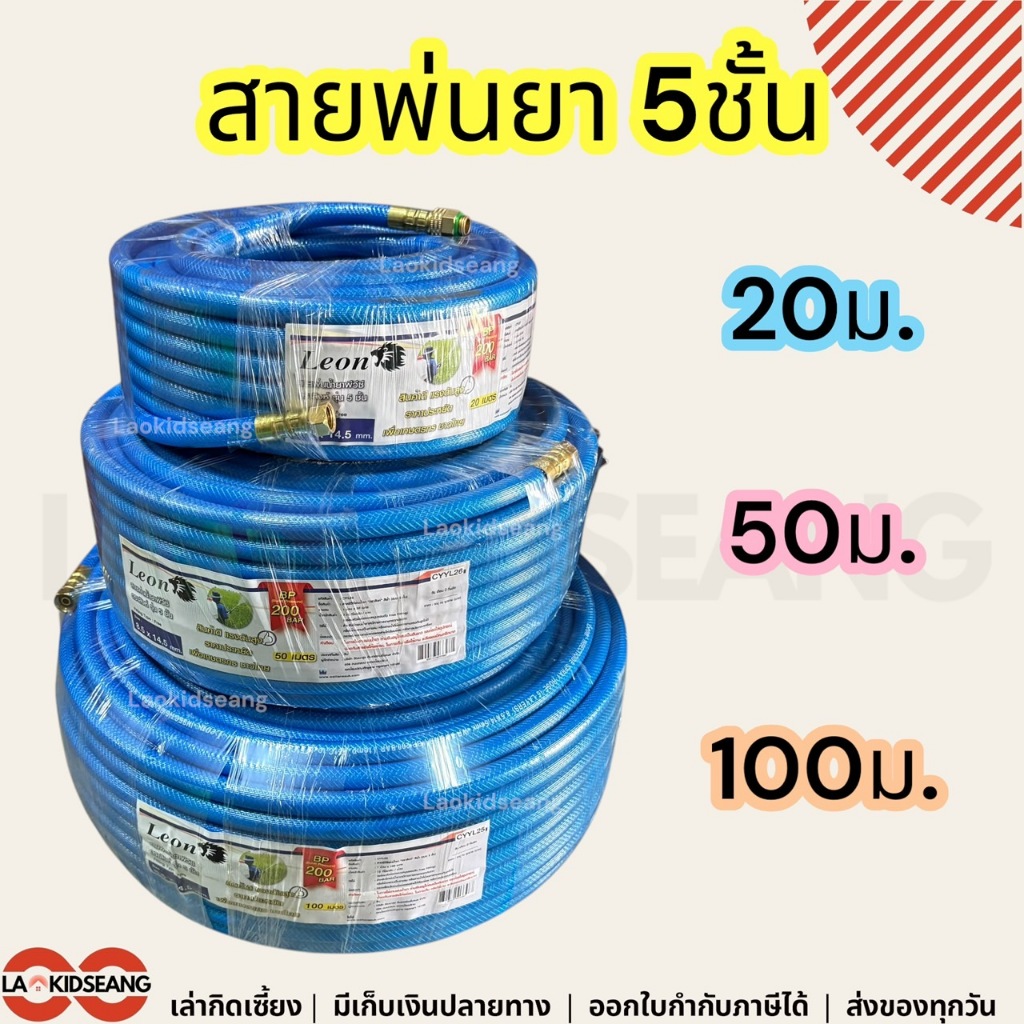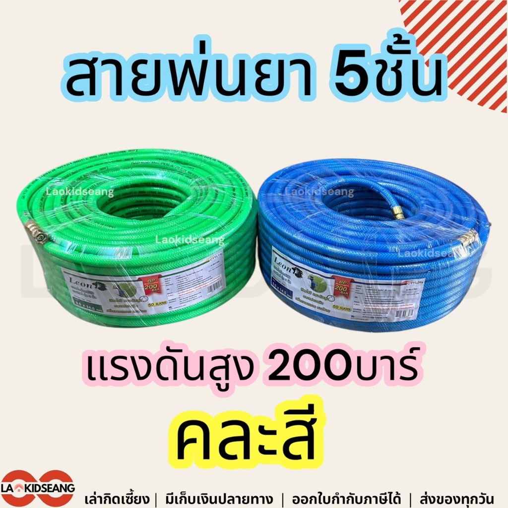 สายพ่นยา 5ชั้น Leon Takara แรงดันสูง 200บาร์ 8.5x14.5mm 20 50 100 เมตร คละสี