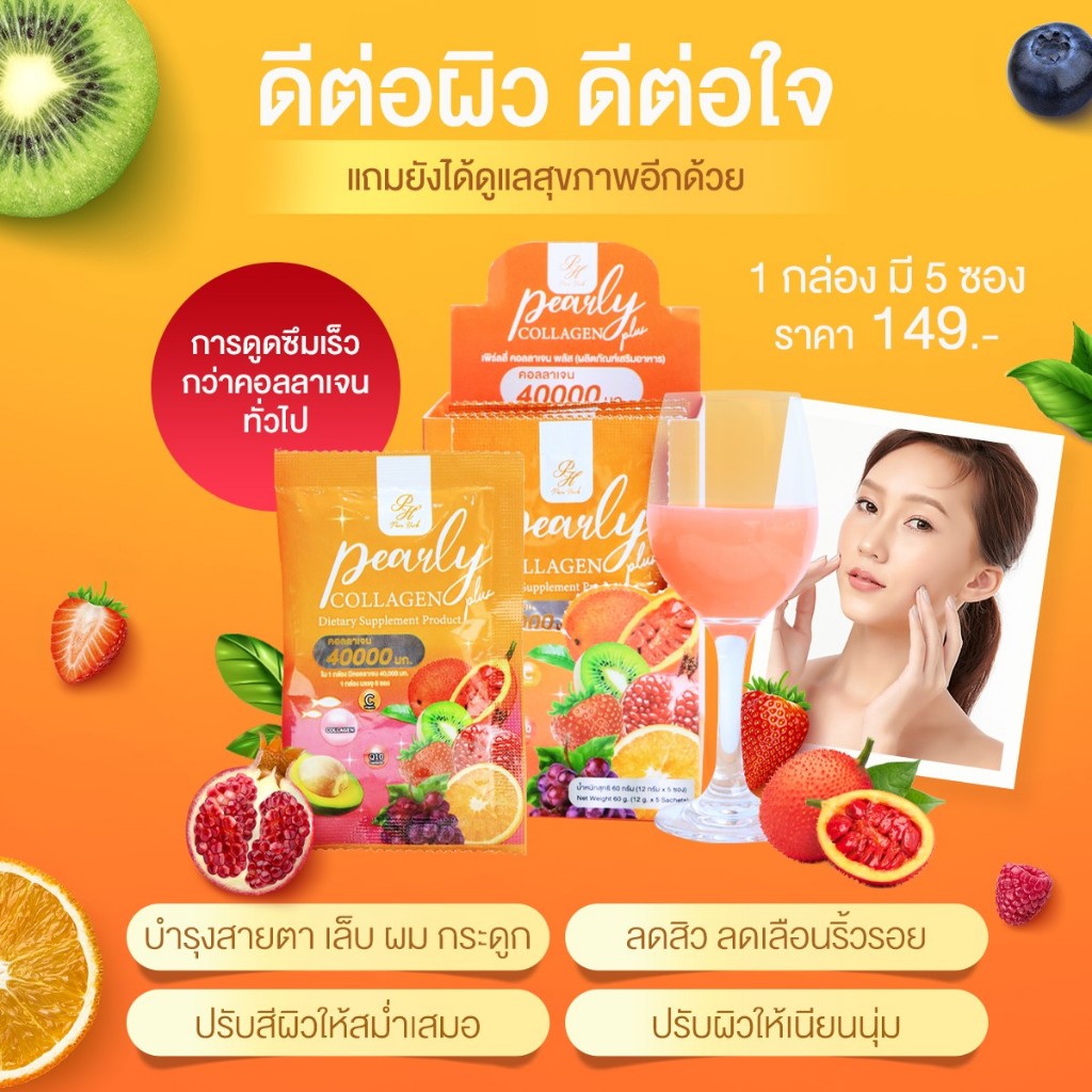 Pearly Collagen เพิร์ลลี่ คอลลาเจน ฟักข้าว เพรียวเฮิร์บ (5 ซอง)