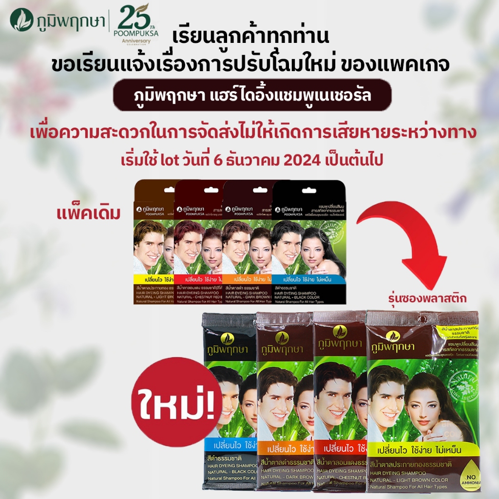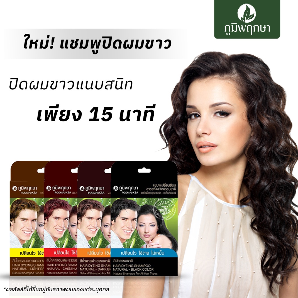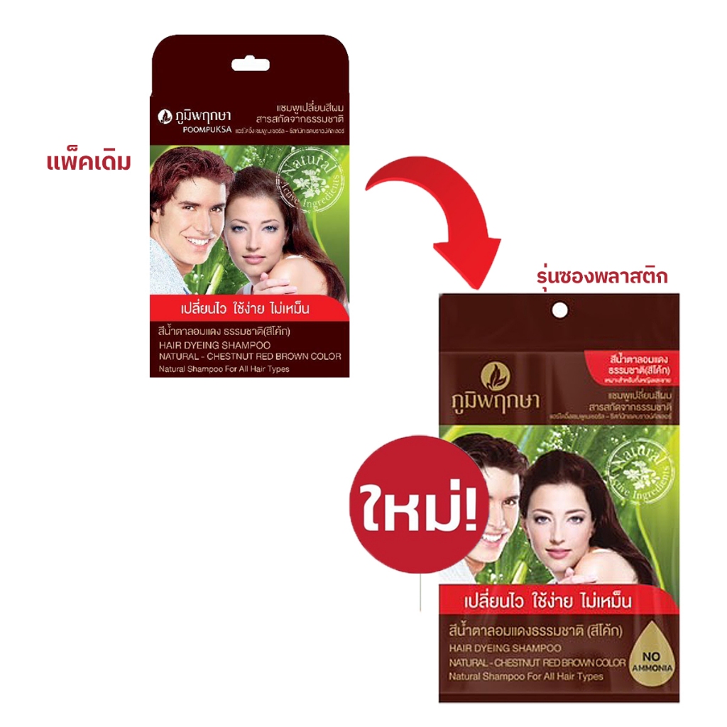 Poompuksa แชมพูเปลี่ยนสีผม สีน้ำตาลอมแดง (สีโค้ก) ภูมิพฤกษา มีส่วนผสมจากสมุนไพรธรรมชาติ ขนาด 25 มล.