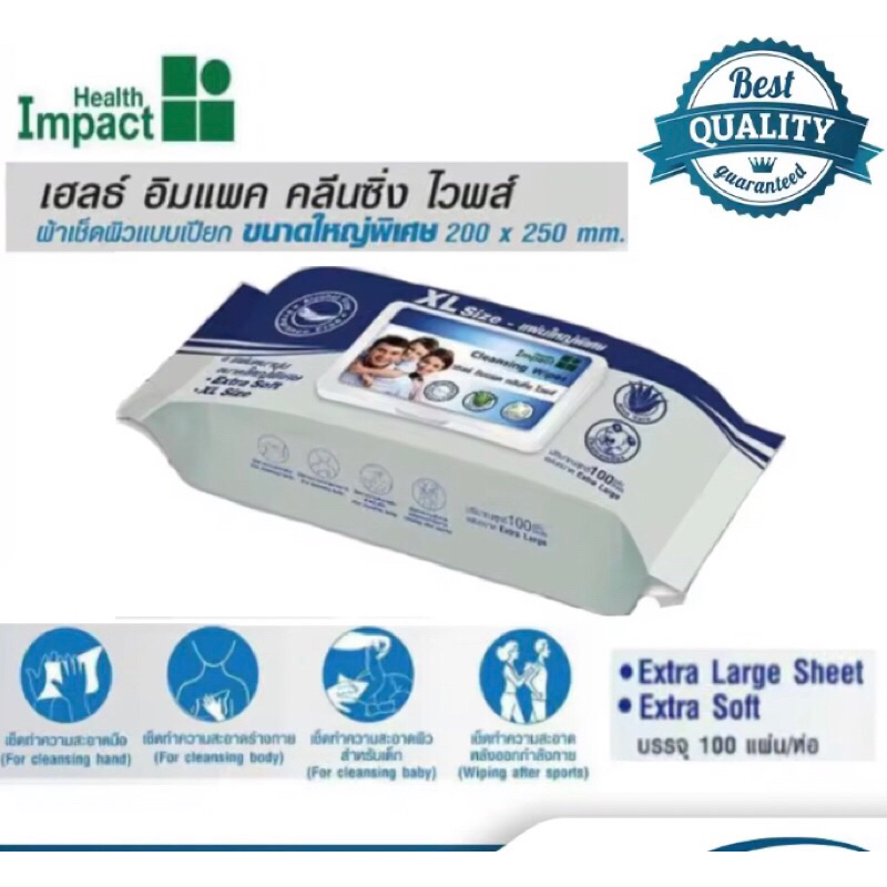 Health Impact ผ้าเปียก,ทิชชู่เปียกขนาดใหญ่พิเศษ Cleansing Wipes Size XL 100 แผ่น (แผ่นใหญ่พิเศษ)