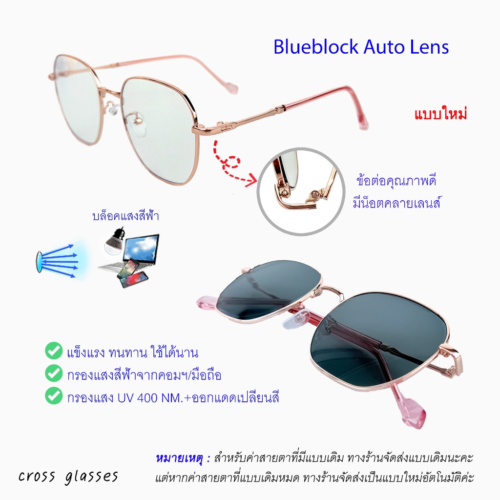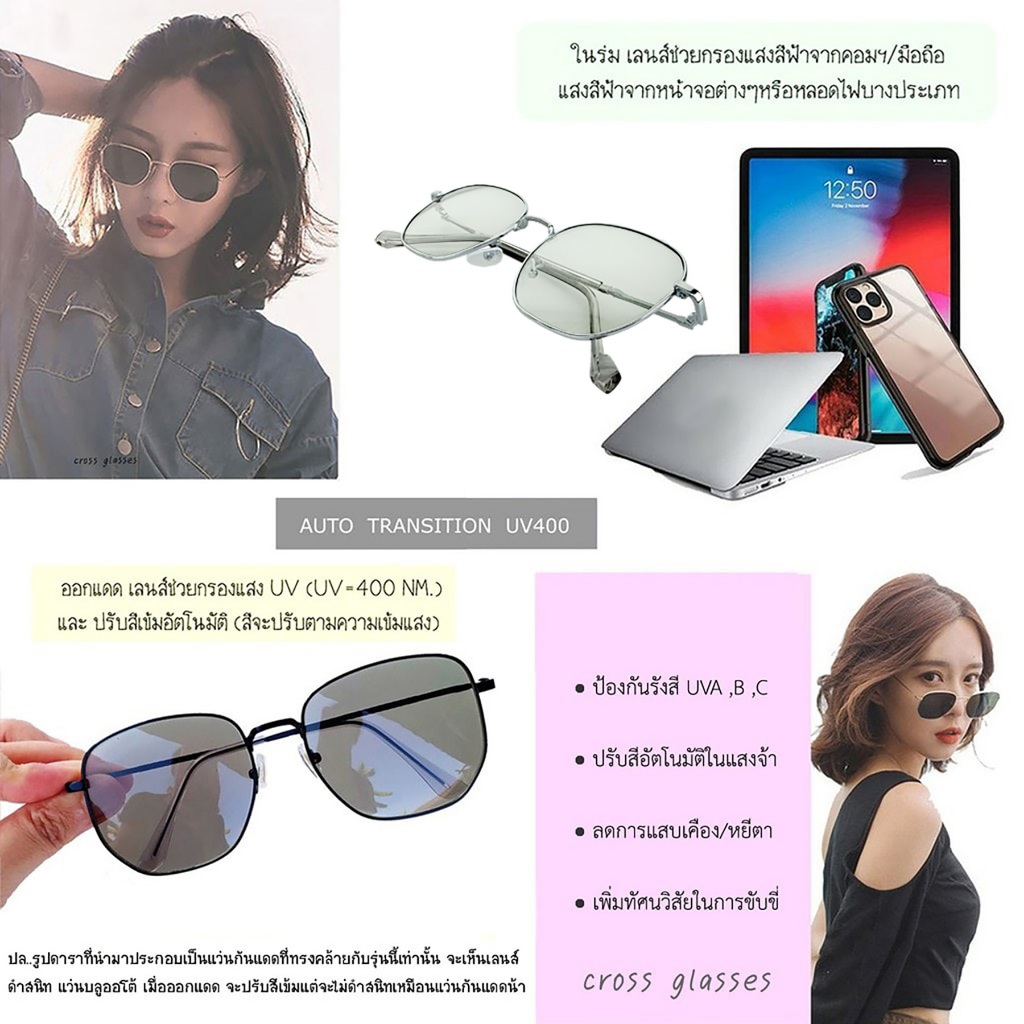 แว่นสายตาสั้น -0.5ถึง-5.0 และสายตาปกติ เลนส์บลูฯออโต้ รหัส BCGS44 Auto