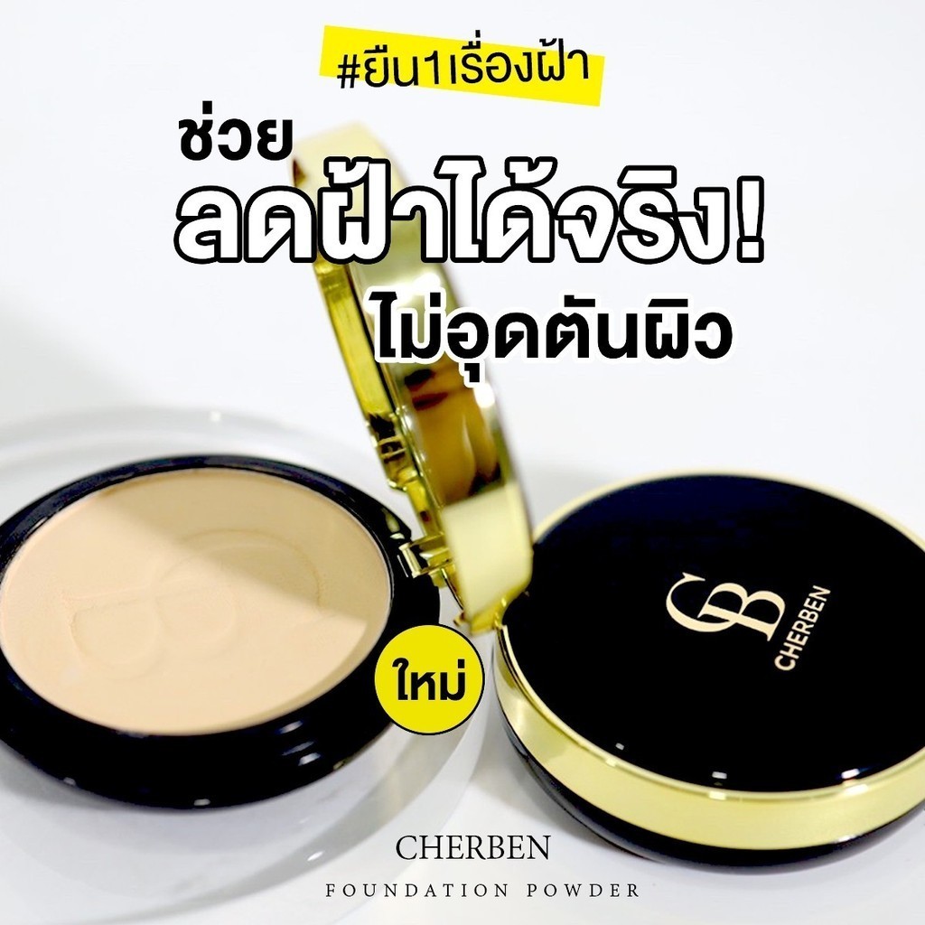 แป้งพัฟเฌอเบญ Cherben Powder ปกปิด กันน้ำ กันเหงื่อเกลี่ยง่าย เบา คุมมัน