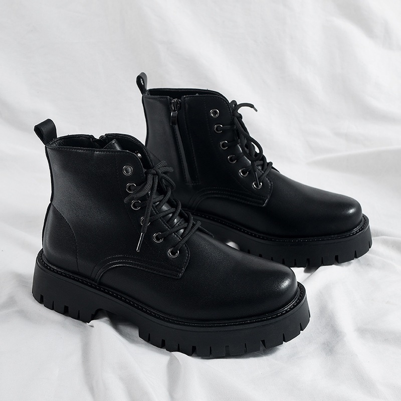 SOVOB ชายซิปด้านข้างส่วนฤดูใบไม้ร่วงฤดูหนาวแฟชั่นกลางแจ้งบูตสั้นหนาด้านล่างรองเท้าหนังสูงด้านบน