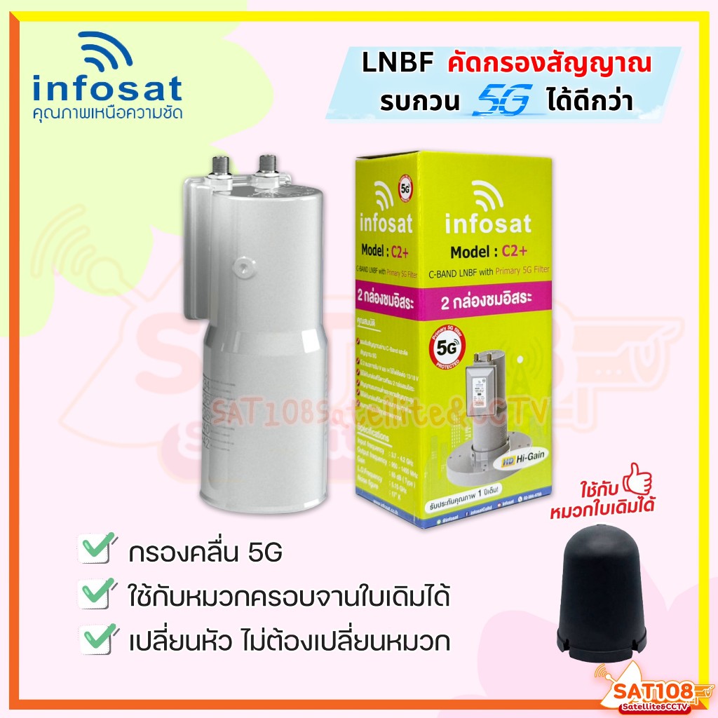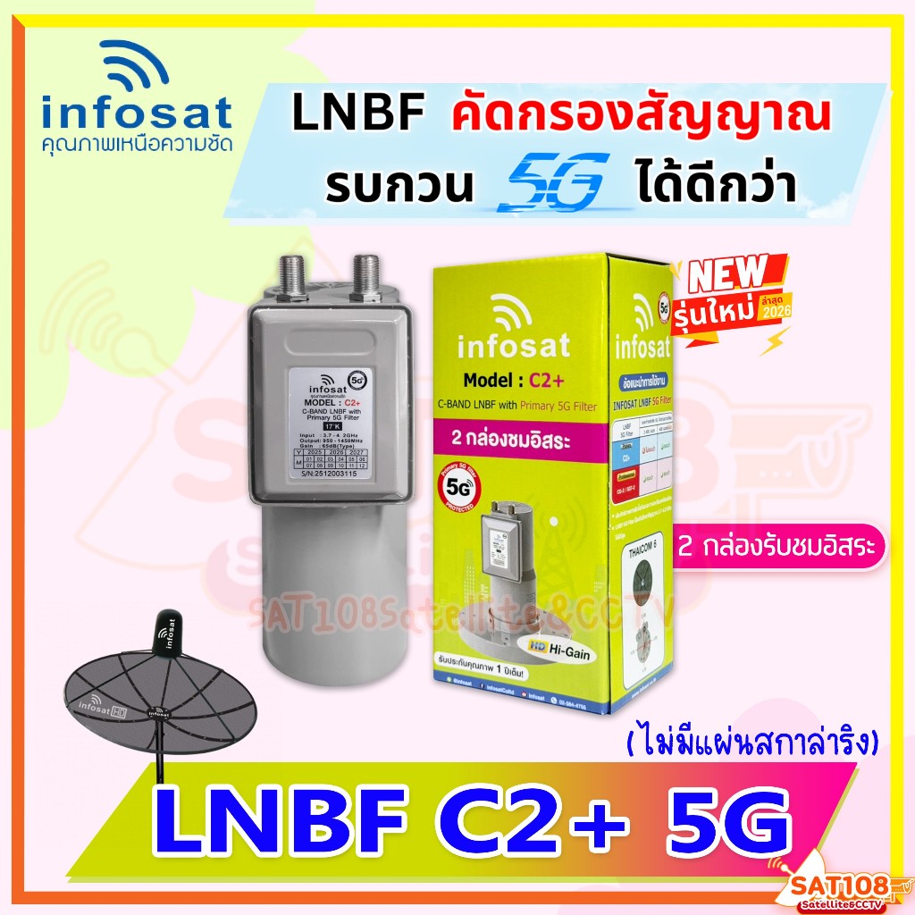 หัวจานLNB INFOSAT รุ่น C2+ ระบบC-Band ตัดสัญญาณรบกวน5G*ไม่มีสกาล่า เฉพาะหัวLNB รุ่นใหม่2026 *ยกแพ็ค*