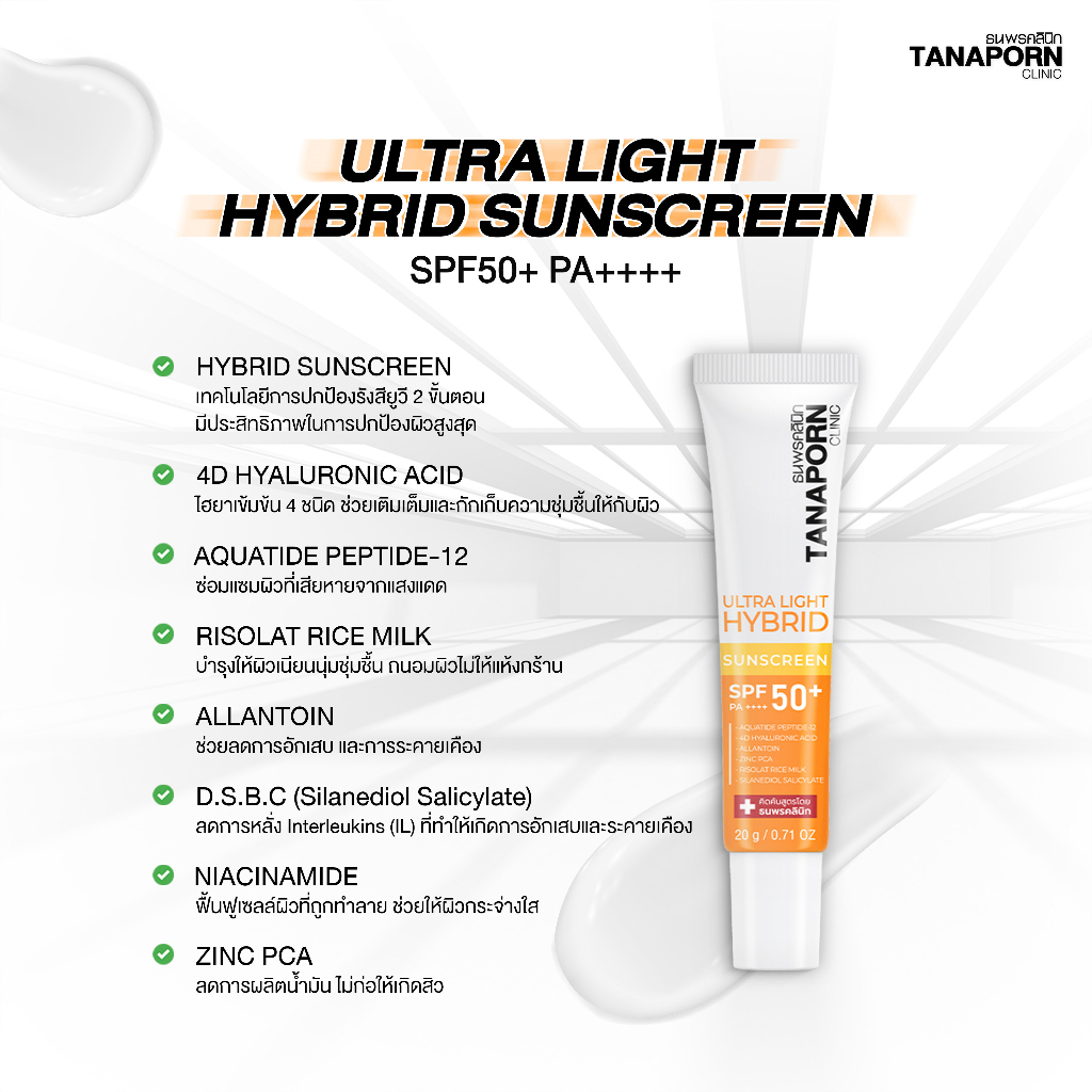 [เซต 3 ชิ้น ] TANAPORN CLINIC - ธนพรคลินิก อัลตร้า ไลท์ ไฮบริด ซันสกรีน เอสพีเอฟ50+ พีเอ ++++ (20g.)