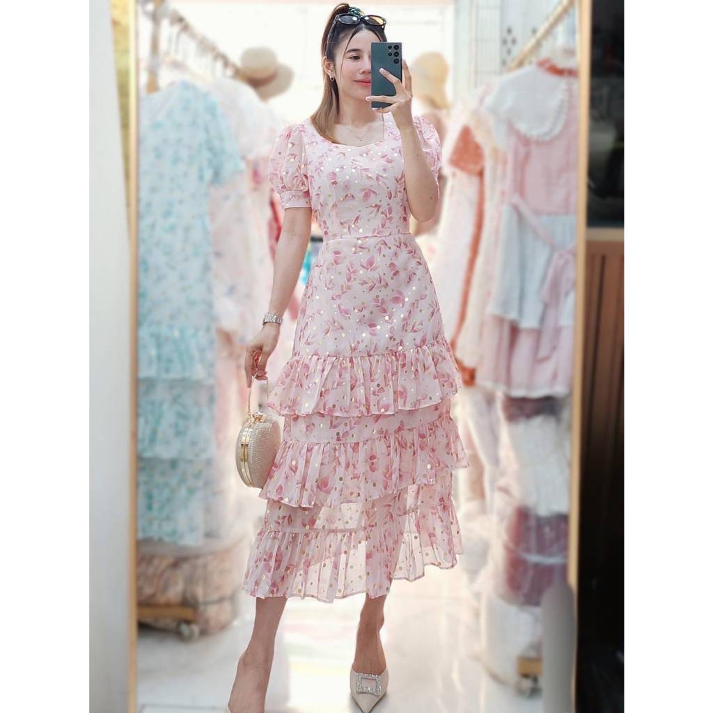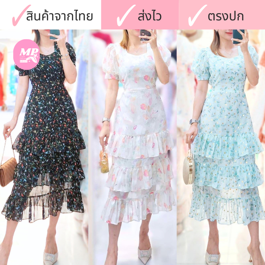 MP #DR9#เดรสยาวผ้าชีฟองเนื้อดี ทรงแขนตุ๊กตา ดีไซน์เรียบหรูงานไทย พร้อมส่ง