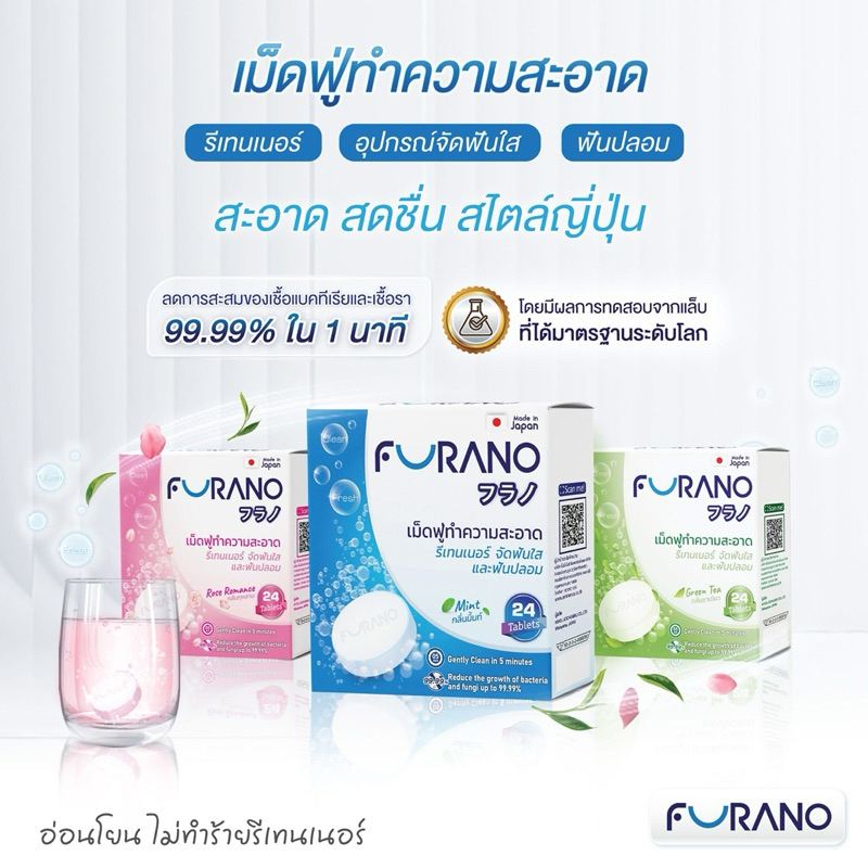 FURANO เม็ดฟู่ล้างรีเทนเนอร์ ฟันปลอม ขจัดคราบ 99% กลิ่นสะอาด มี อย. (4 BOX)