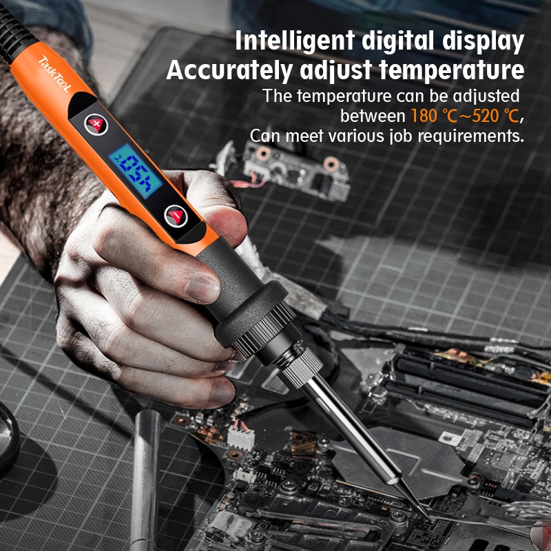 TASKTOOL ชุดหัวแร้งบัดกรีไฟฟ้า หัวแร้งไฟฟ้า 80W ปรับอุณหภูมิได้ 180-520°C พร้อมหน้าจอ LED และมือจับป้องกันไฟฟ้าสถิต