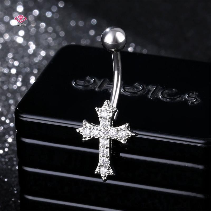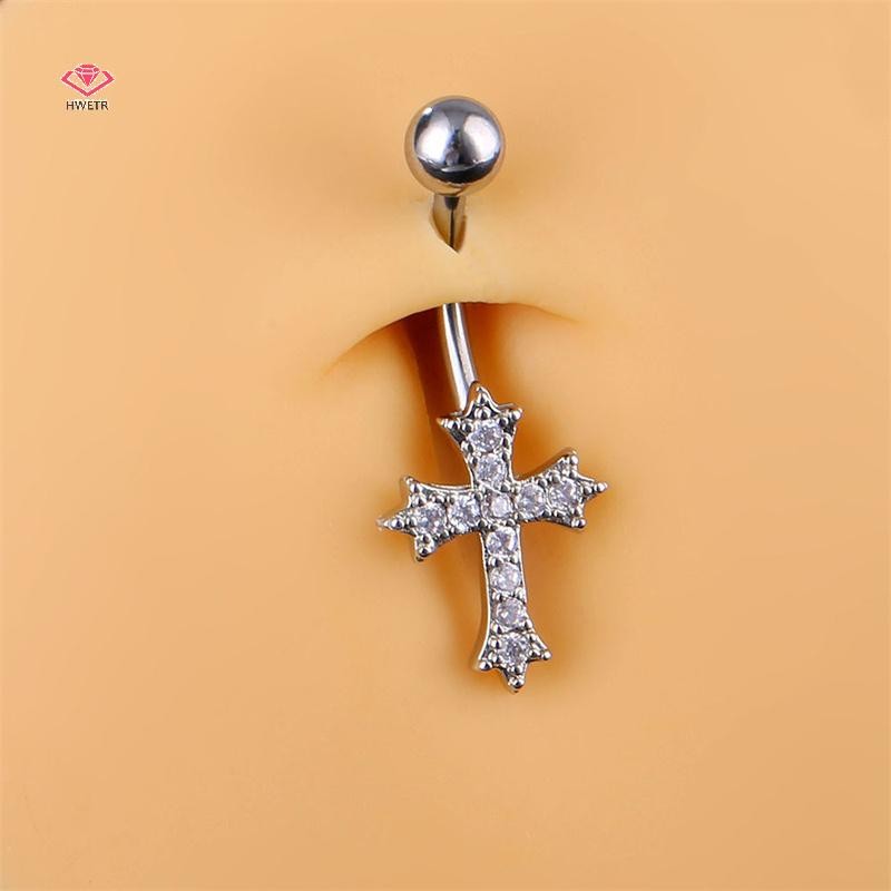 Hwetr แฟชั่นเซ็กซี่เจาะ Navel Nail Body เครื่องประดับสําหรับผู้หญิงสาวส่วนบุคคล Simple Cross จี้ Belly ปุ่มแหวนของขวัญใหม่