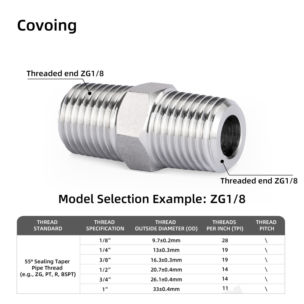 ข้อต่อเกลียวนอกสองด้านหกเหลี่ยม 304 สแตนเลส แบบหนา แรงดันสูง ข้อต่อตรงเกลียวคู่ ตัวต่อเกลียวตรง ลดขนาด อะแดปเตอร์เชื่อมต่อท่อ 1/2 1/4 1/8 สำหรับลม น้ำ น้ำมัน ระบบไฮดรอลิก