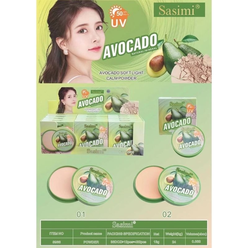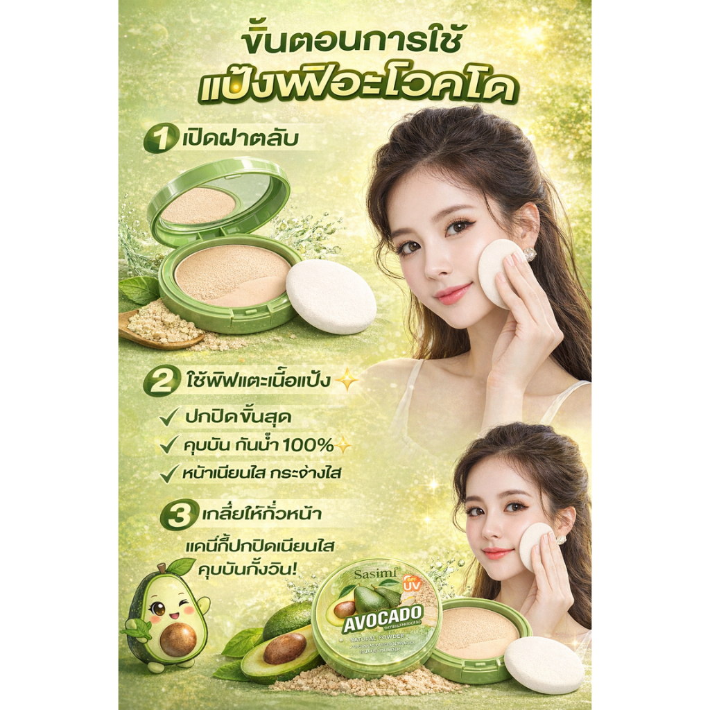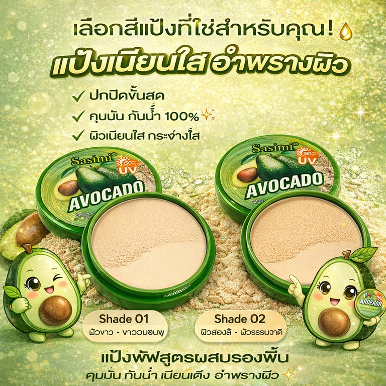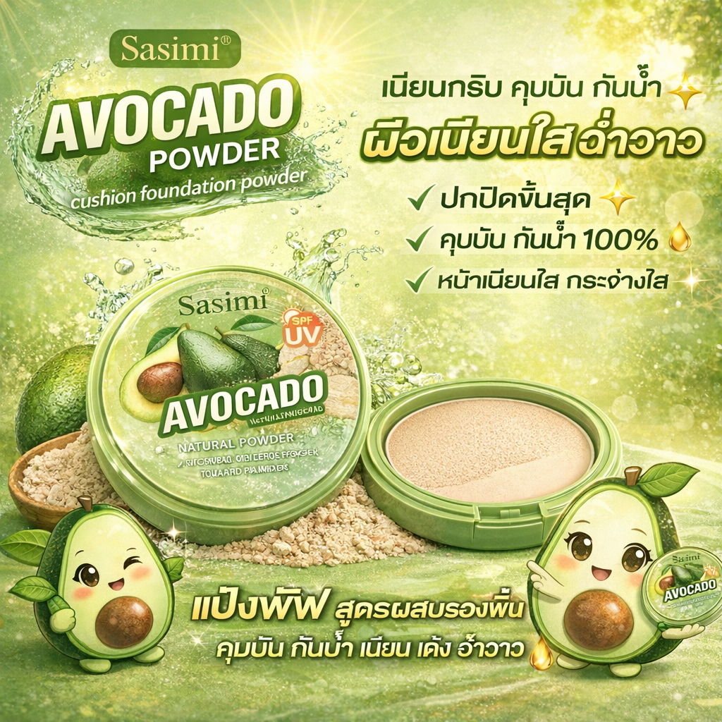 SASIMI POWDER AVOCADO แป้งพัฟผสมรองพื้น กันน้ำ POWDER ปกปิด คุมมันซับความมัน หน้าไม่เทาบางเบาคุมมัน