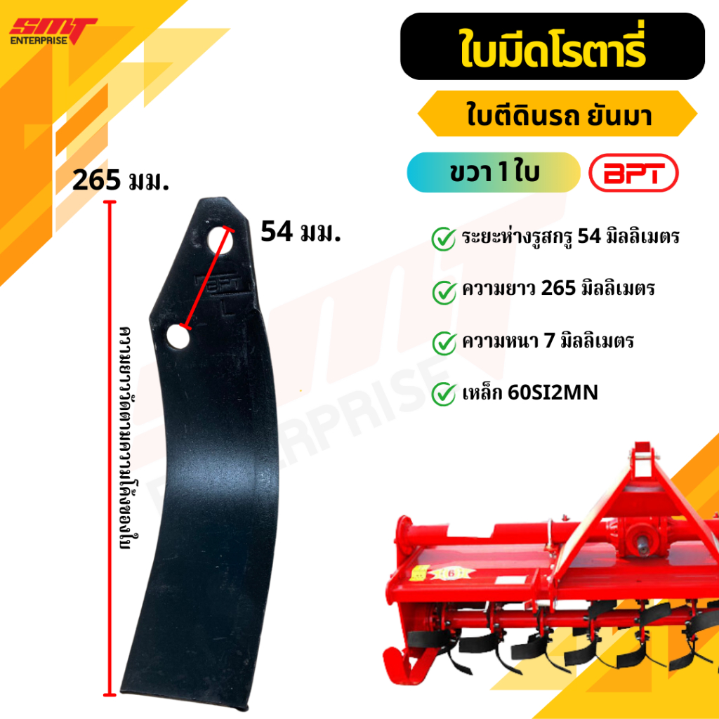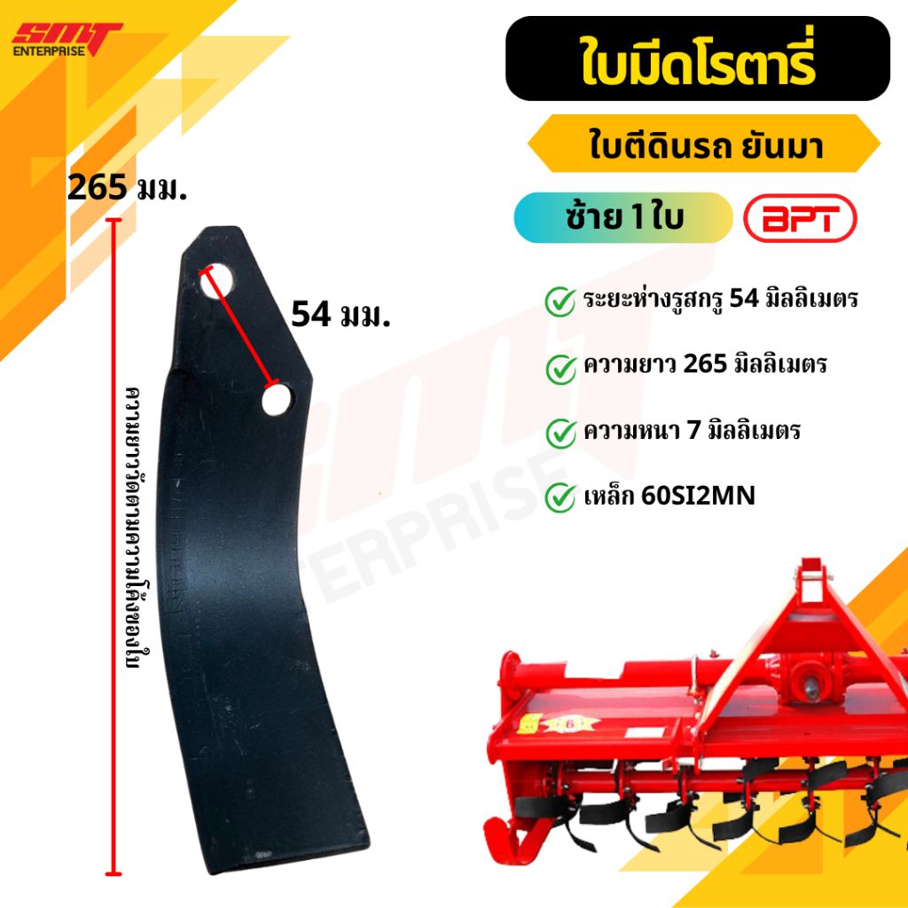 ใบตีดินรถยันมา ใบมีดจอบหมุน ใบพรวนดิน ใบตีดิน ใบโรตารี่ คุณภาพดี (ระยะรู 54MM) (LH+RH) BPT