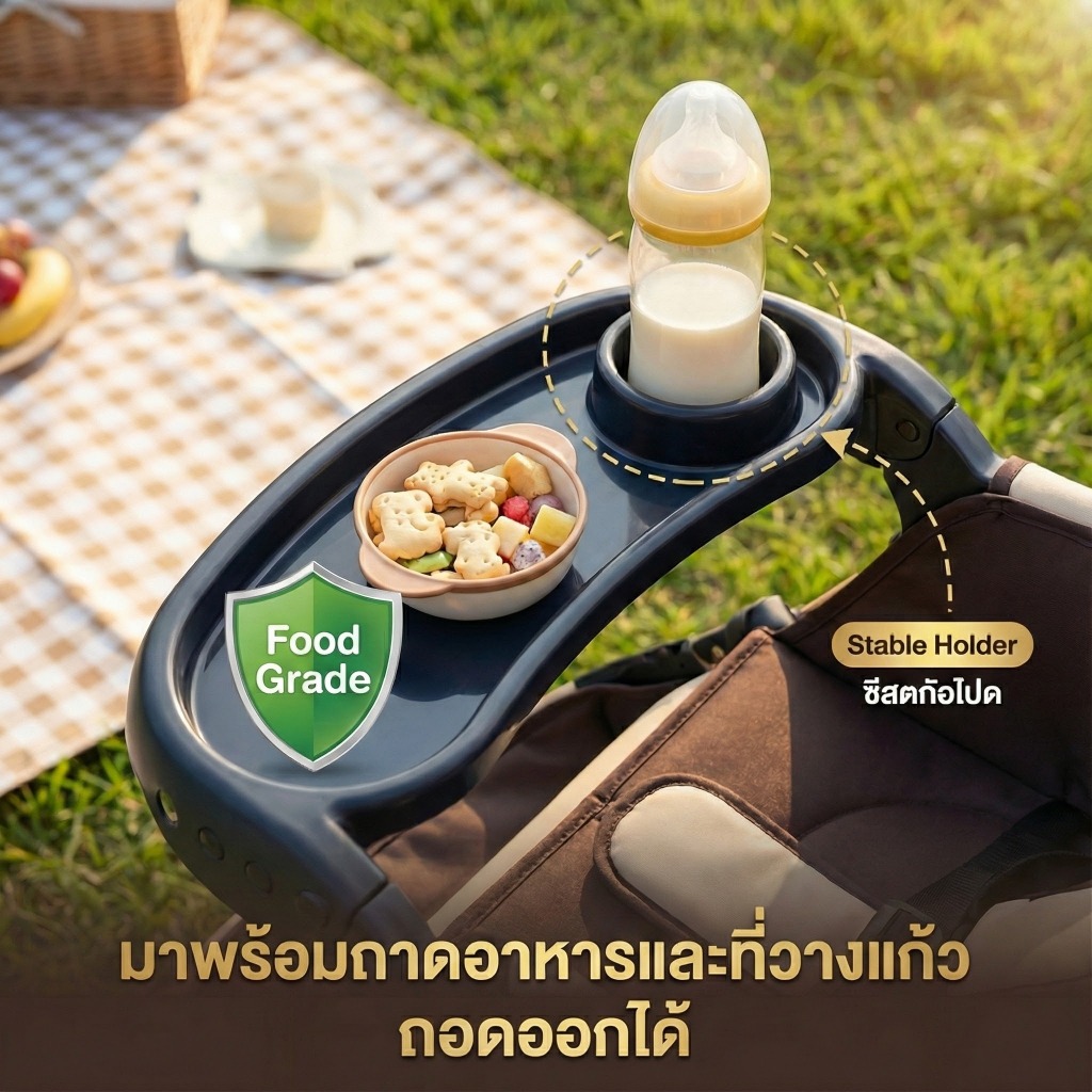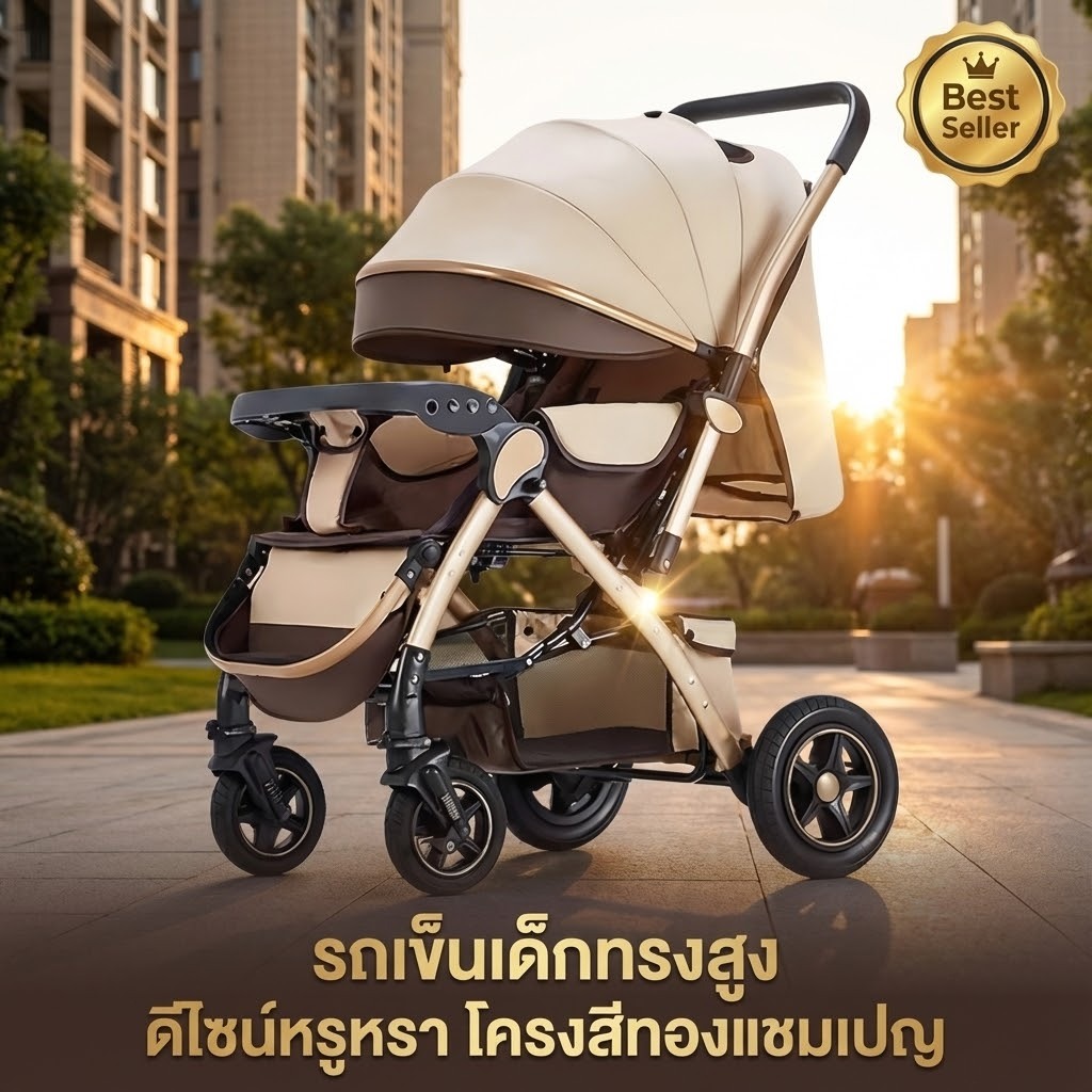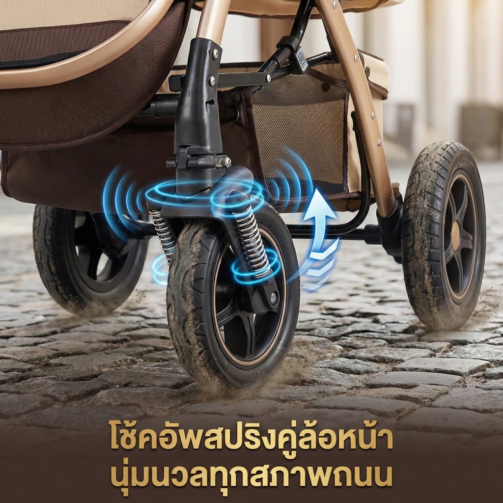 Beige รถเข็นเด็ก รถเข็นเด็กพับได้ 0-5 ปี รถเข็นเด็กพกพา ล้อมีเบรค พกพาสะดวก เข็นหน้า-หลังได้