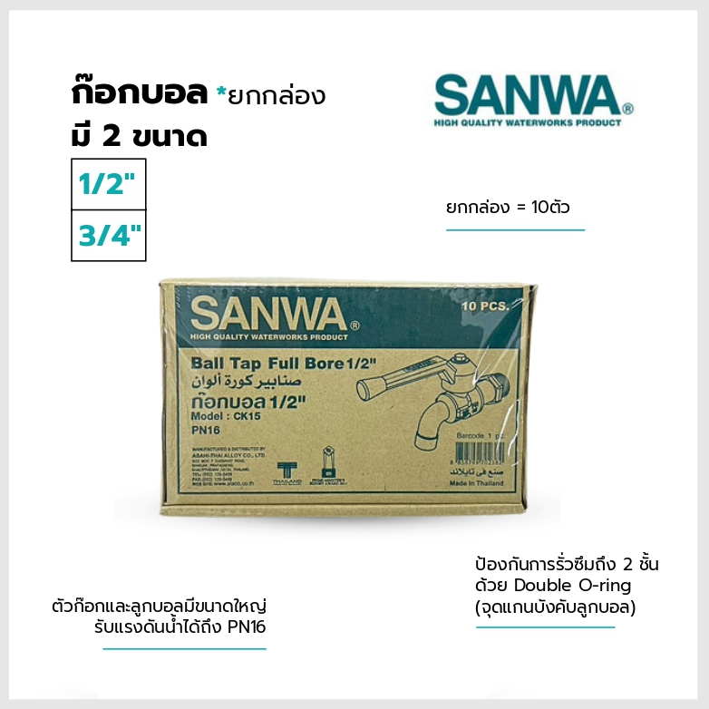SANWA ก๊อกบอล ขนาด1/2"และ 3/4" (*ยกกล่อง10ตัว) ของแท้100%
