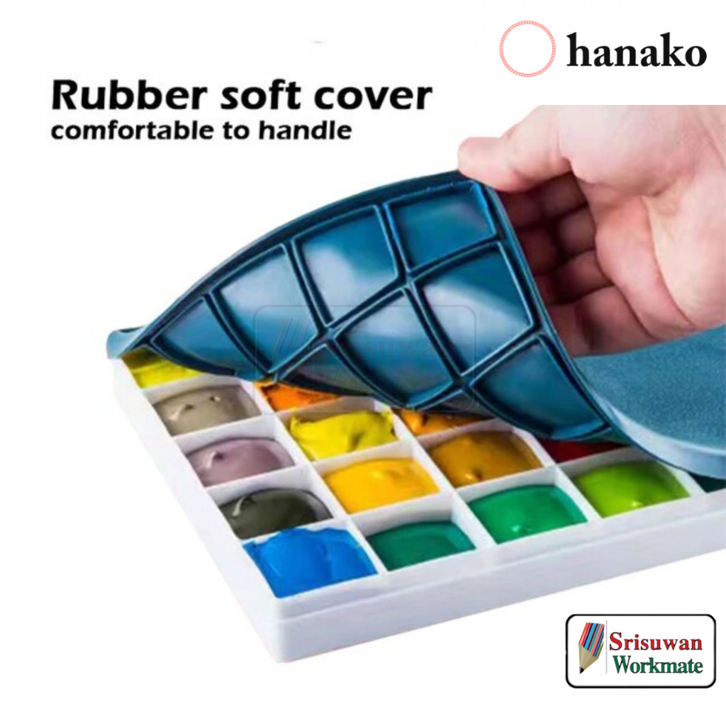 hanako จานสีพร้อมฝายาง 24 / 36 / 44 ช่อง Rubber Art Palette จานสีฝายาง จานสีโปสเตอร์ จานสีอะคริลิค