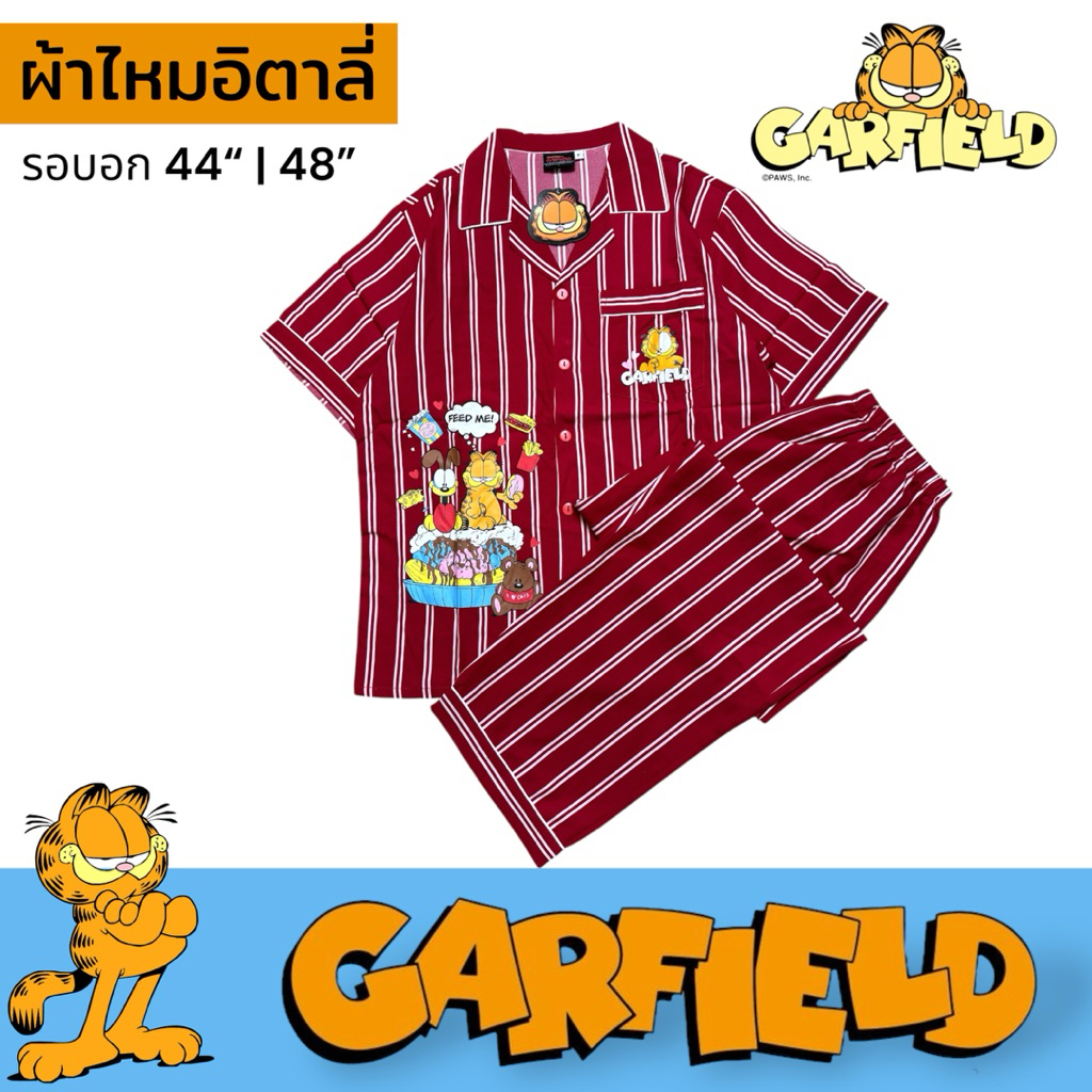 ชุดนอน ผ้าไหมอิตาลี่ การ์ฟิลด์ GARFIELD รอบอก44“/48“ ลิขสิทธิ์แท้