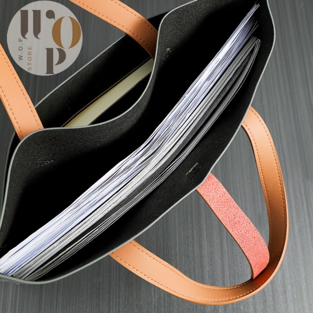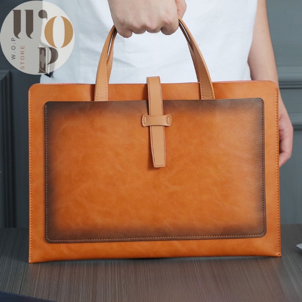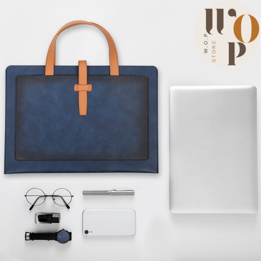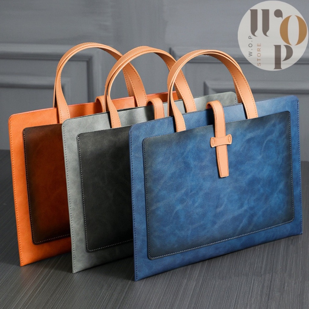 WOP Store พร้อมส่ง กระเป๋าใส่เอกสาร A4แบบพกพา ใส่แล็ปท็อป โน๊ตบุ๊คได้ วัสดุเป็นหนังPUกันน้ำได้ จุเอกสารได้เยอะ