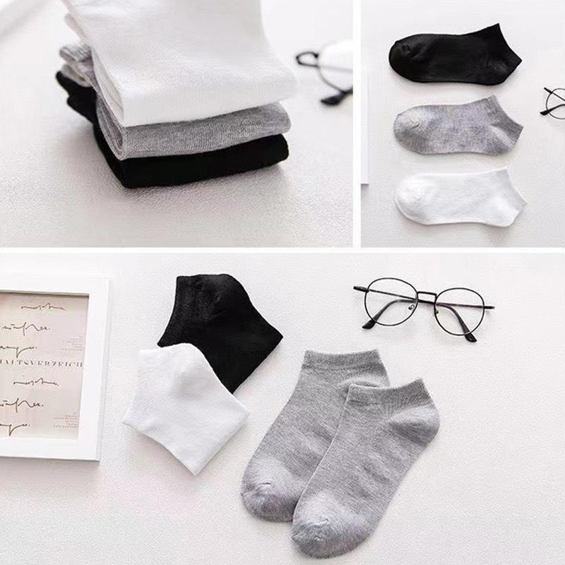 [ ซื้อ 10 คู่ แถม 10 คู่ ] ถุงเท้าแฟชั่น ถุงเท้ากันกลิ่นสำหรับนักเรียนมัธยมปลายที่สั้นและระบายอากาศ ถุงเท้าสีพื้ ข้อสั้