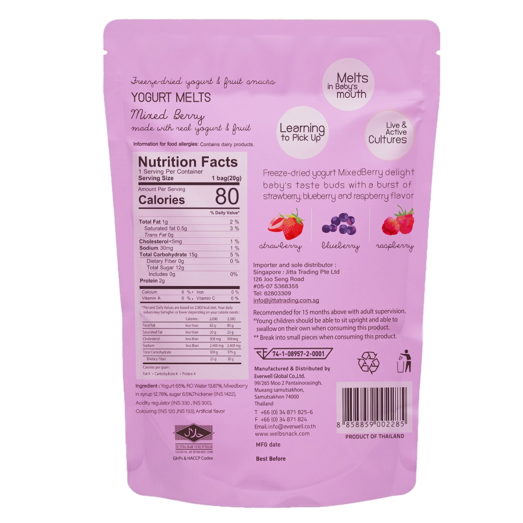 Wel-B Yogurt Melts Mixed Berry 20g.(โยเกิร์ตกรอบ มิกซ์เบอร์รี่ 20 กรัม) (แพ็ค 6 ซอง)