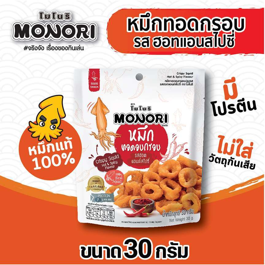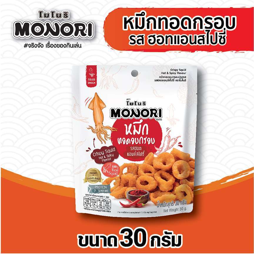 โมโนริ หมึกทอดอบกรอบ รสสไปซี่ 30 กรัม (แพ็ค24)