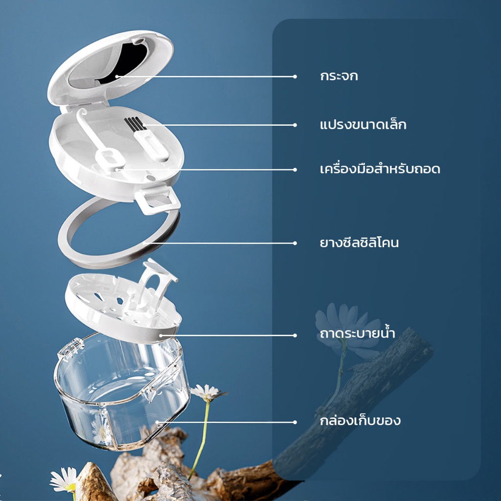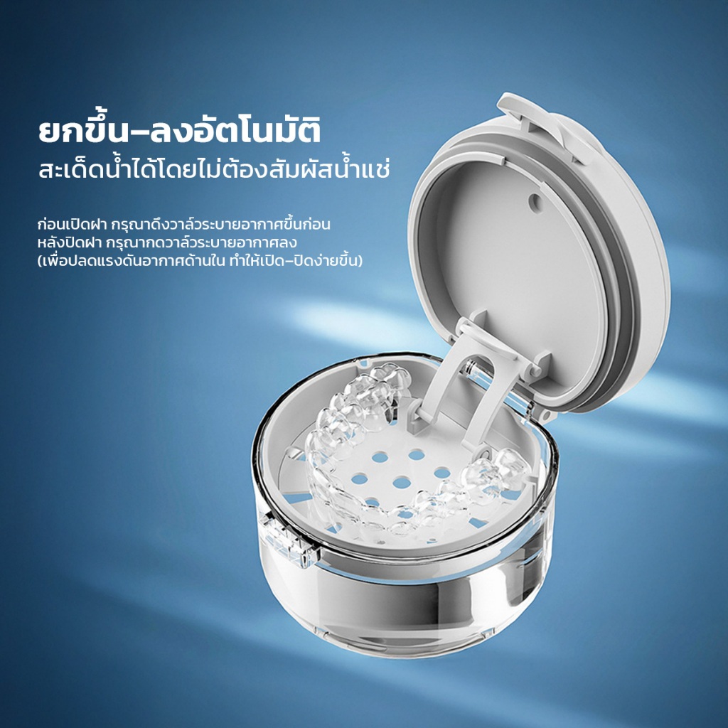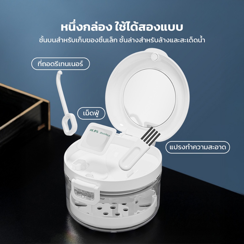 Pandaกล่องรีเทนเนอร์ มีรูระบายน้ำ แช่ฟันปลอมได้ ทำความสะอาดง่าย มีกระจกในตัว พกพาสะดวก Retainer Box