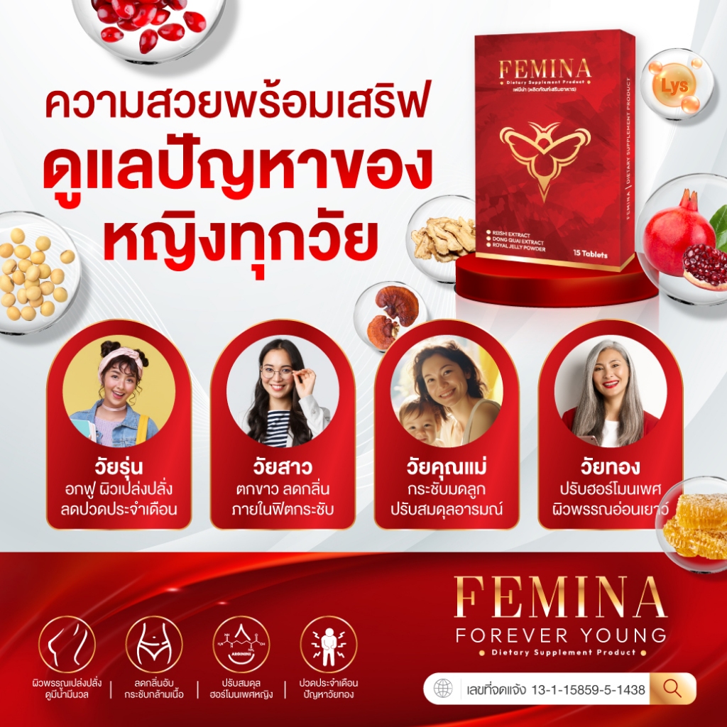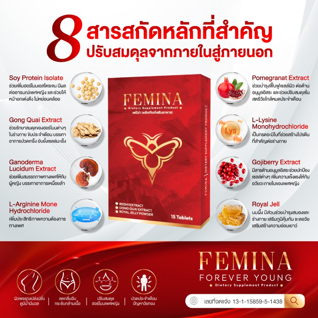 (ของแท้100%) FEMINA • เฟมีน่า วิตามินสำหรับผู้หญิง บำรุงภายใน วัยทอง