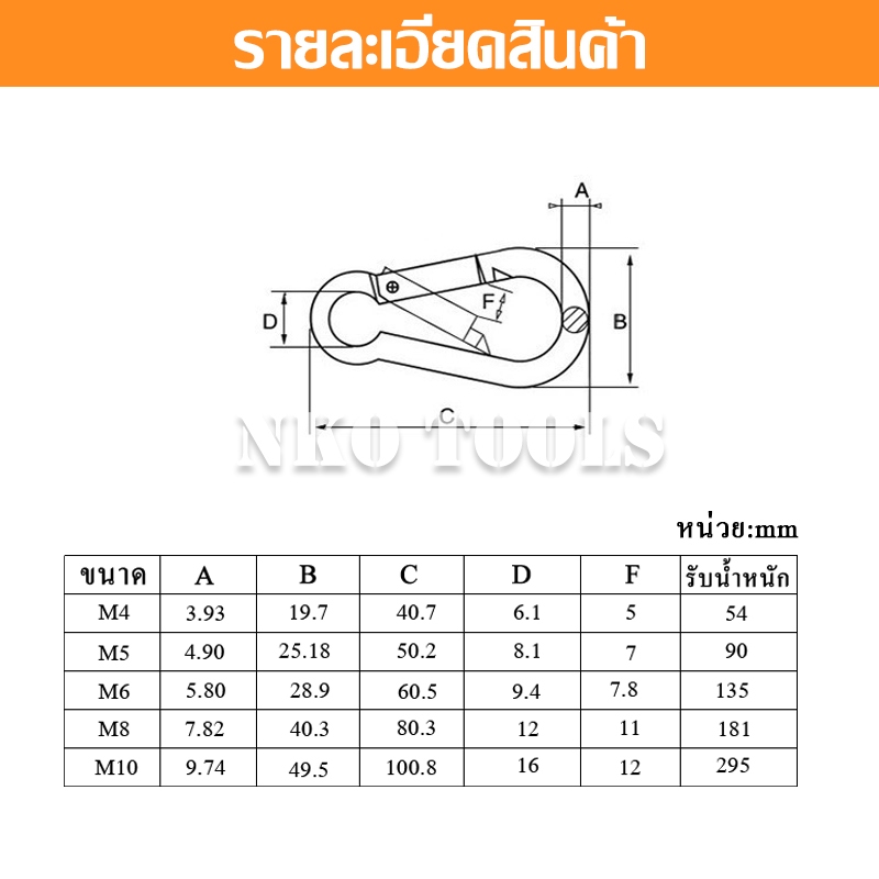 คาราบิเนอร์ 304 สแตนเลสสปริง ของแท้ 100% มีขนาด 4มม. 5มม.6มม.8มม.10มม. ราคาต่อชิ้น