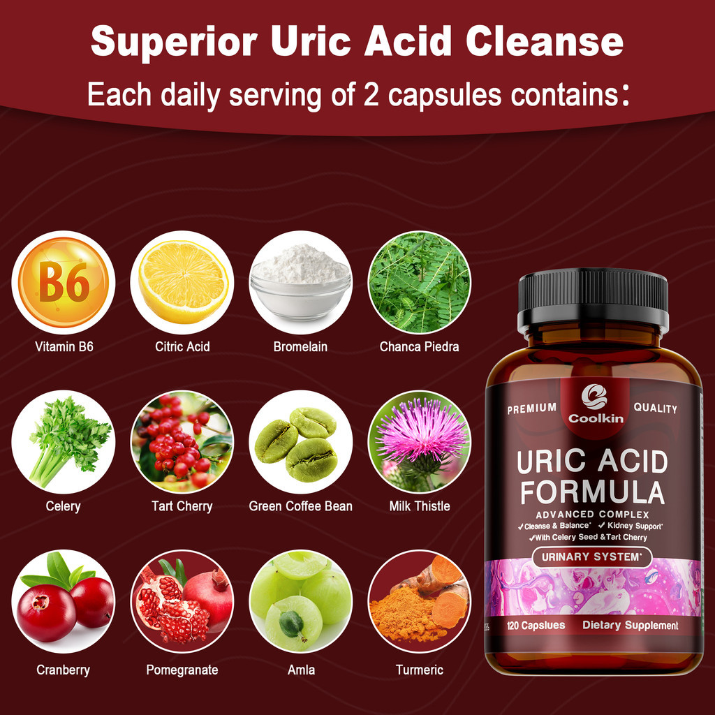 Coolkin Uric Acid Balance Capsules, Advanced Complex with Celery Seed & Tart Cherry, Kidney & Urinary Tract Support, สูตรสมุนไพรระดับพรีเมียม, มังสวิรัติที่เป็นมิตร