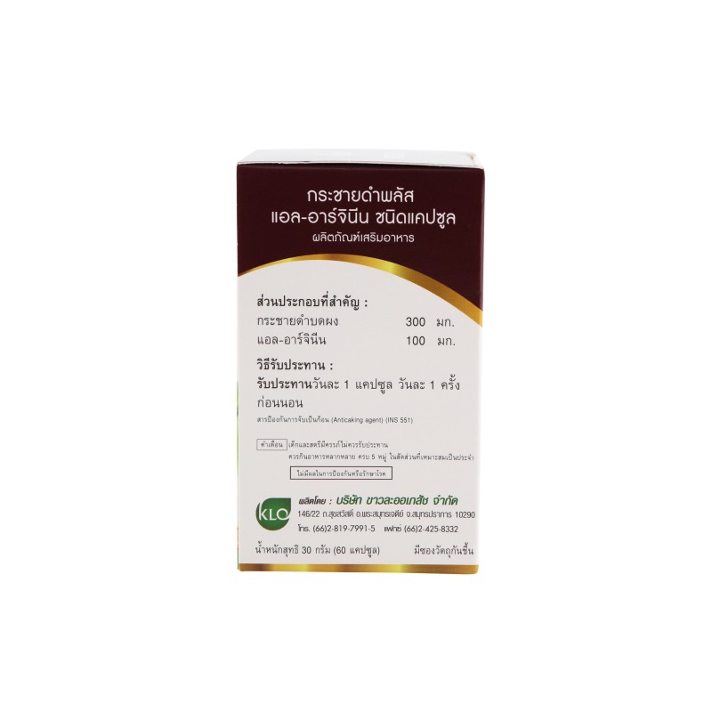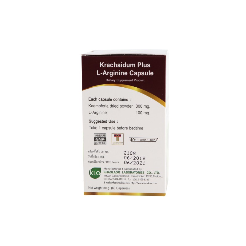 Khaolaor ขาวละออ กระชายดำพลัสแอล-อาร์จินีน 60 แคปซูล/กล่อง