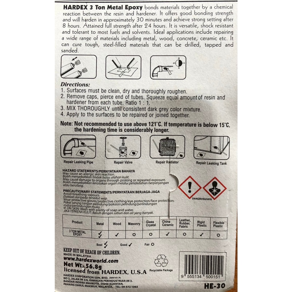 กาวอีพ็อกซีเชื่อมโลหะ กาวติดเหล็กแรงยึดสูงพิเศษ 3 ตัน Hardex 3 TON METALWELD EPOXY COMPOUND 56.8 g