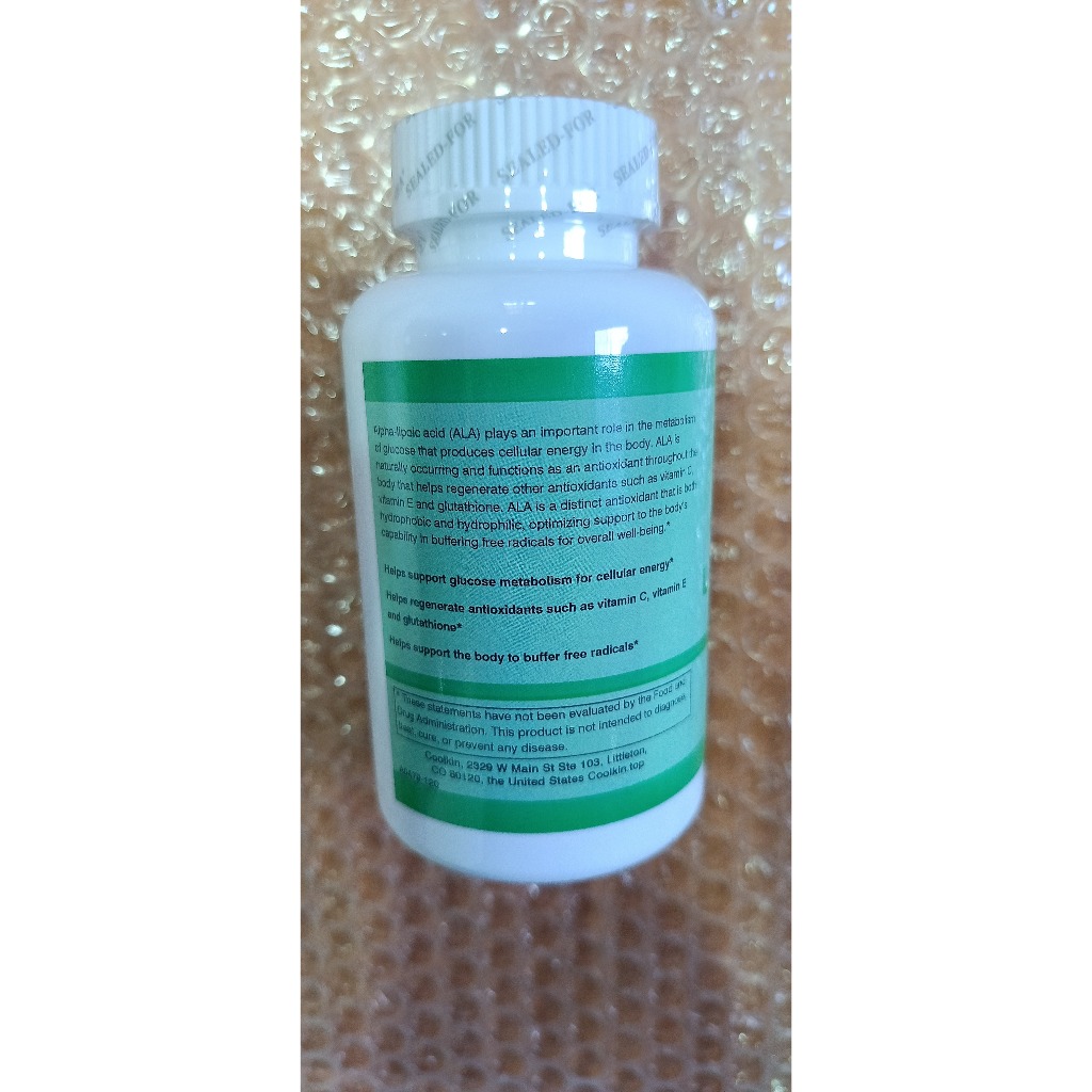 ( ส่งฟรี รับประกันของแท้ ) ALA ต้านอนุมูลอิสระ ปรับการควบคุมระดับน้ำตาล Coolkin Alpha Lipoic Acid 650 mg 120 Began Caps