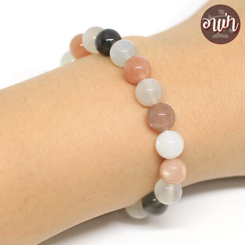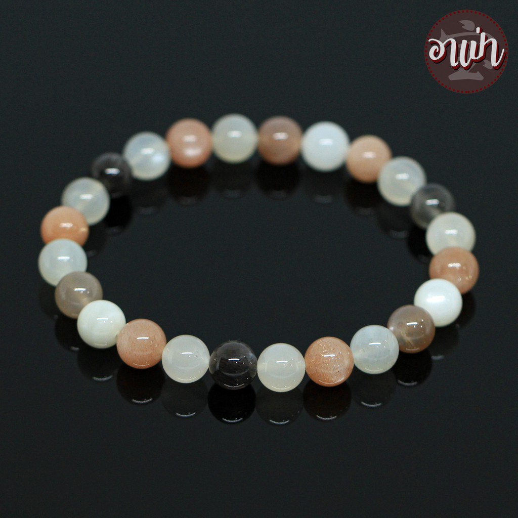 หินมูนสโตน 3 สี หินมุกดาหาร Moonstone ขนาด 8 มิล หินแท้ 100% หินแห่งความรัก หนึ่งในอัญมณีมงคล 9 ประการ นพรัตน์
