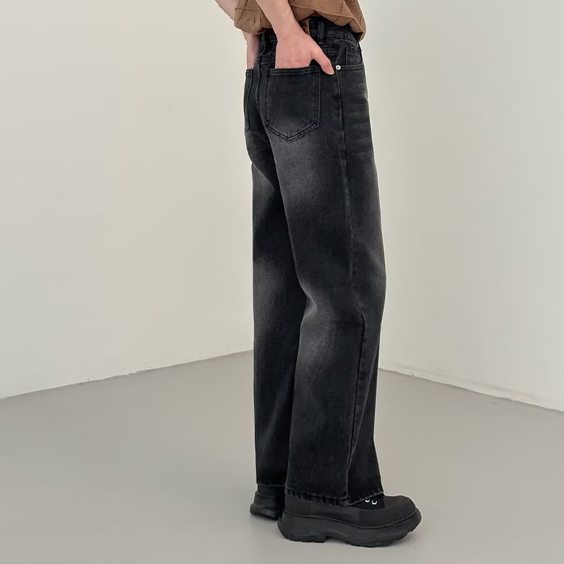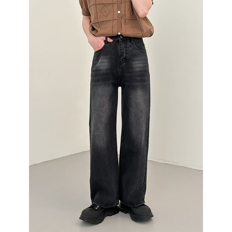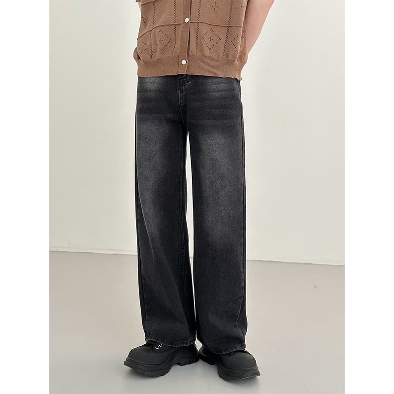 Bonnie Cathy ไม่ ล้างกางเกงยีนส์ถุงทุกข์วางเดรปกางเกงขากว้างสีเข้มกางเกงทรงหลวมย้อนยุค