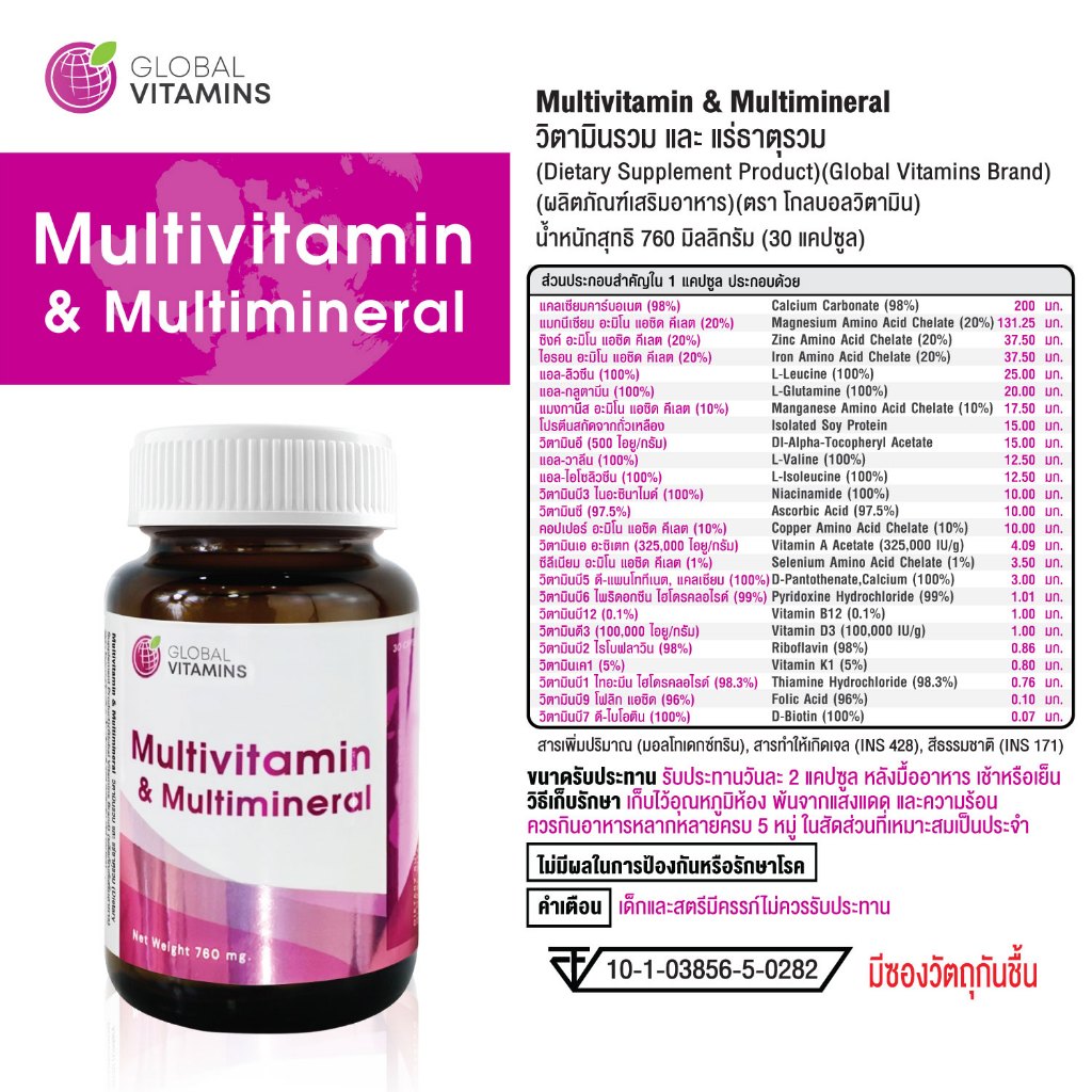 [แพ็ค 3 ขวด] วิตามินรวม และ แร่ธาตุรวม โกลบอลวิตามิน Multivitamin & Multimineral Global Vitamins มัลติวิตามิน