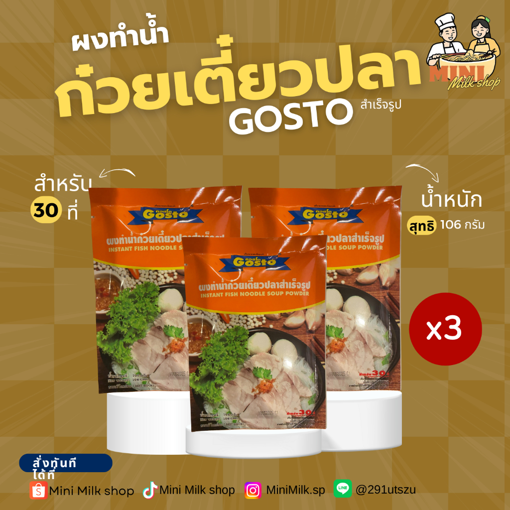 [3ซอง] Gostoผงปรุงรสน้ำก๋วยเตี๋ยวปลา 106 กรัม
