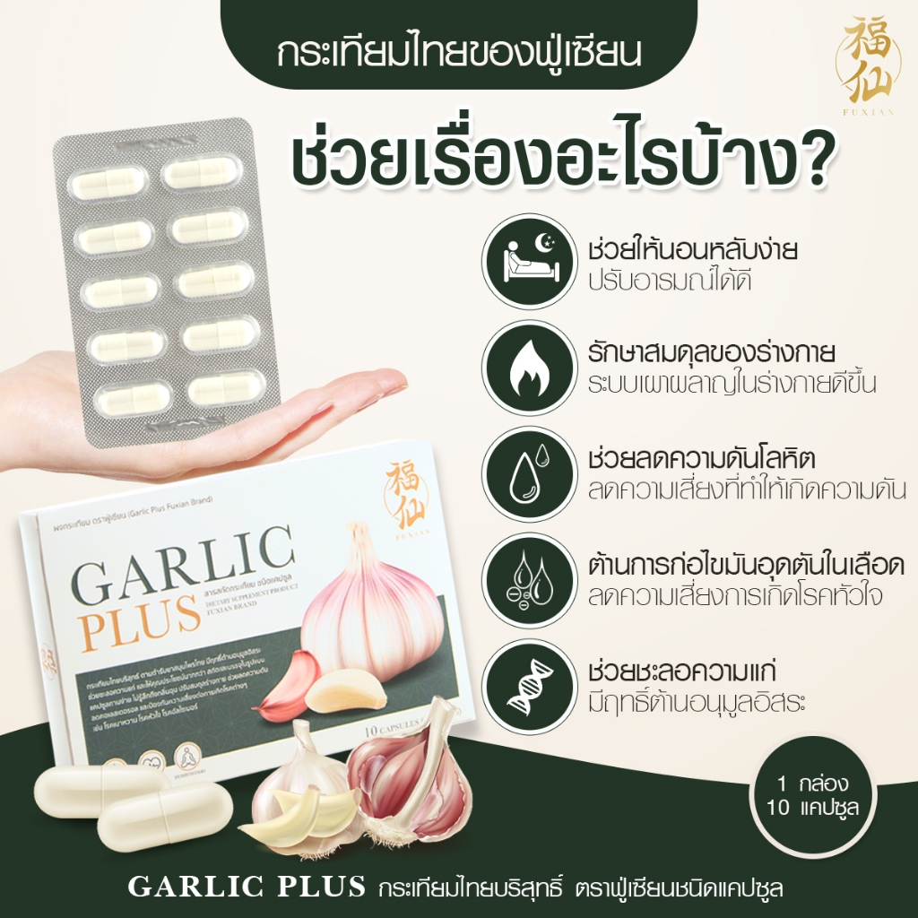 [ตะกร้าบริษัท ซื้อ 1 แถม 1] Fuxian : กระเทียมไทยสกัด ชนิดแคปซูล Garlic Plus ลดไขมันร้าย เพิ่มไขมันดี