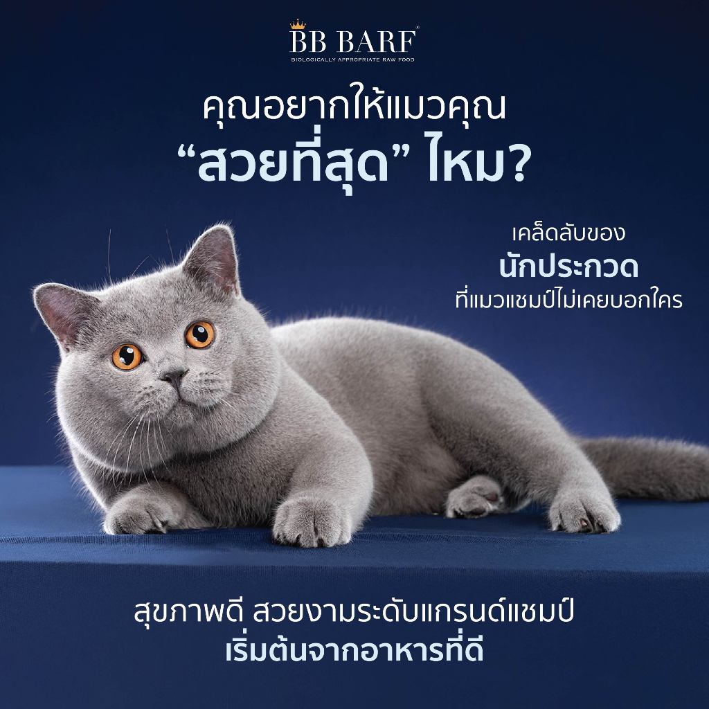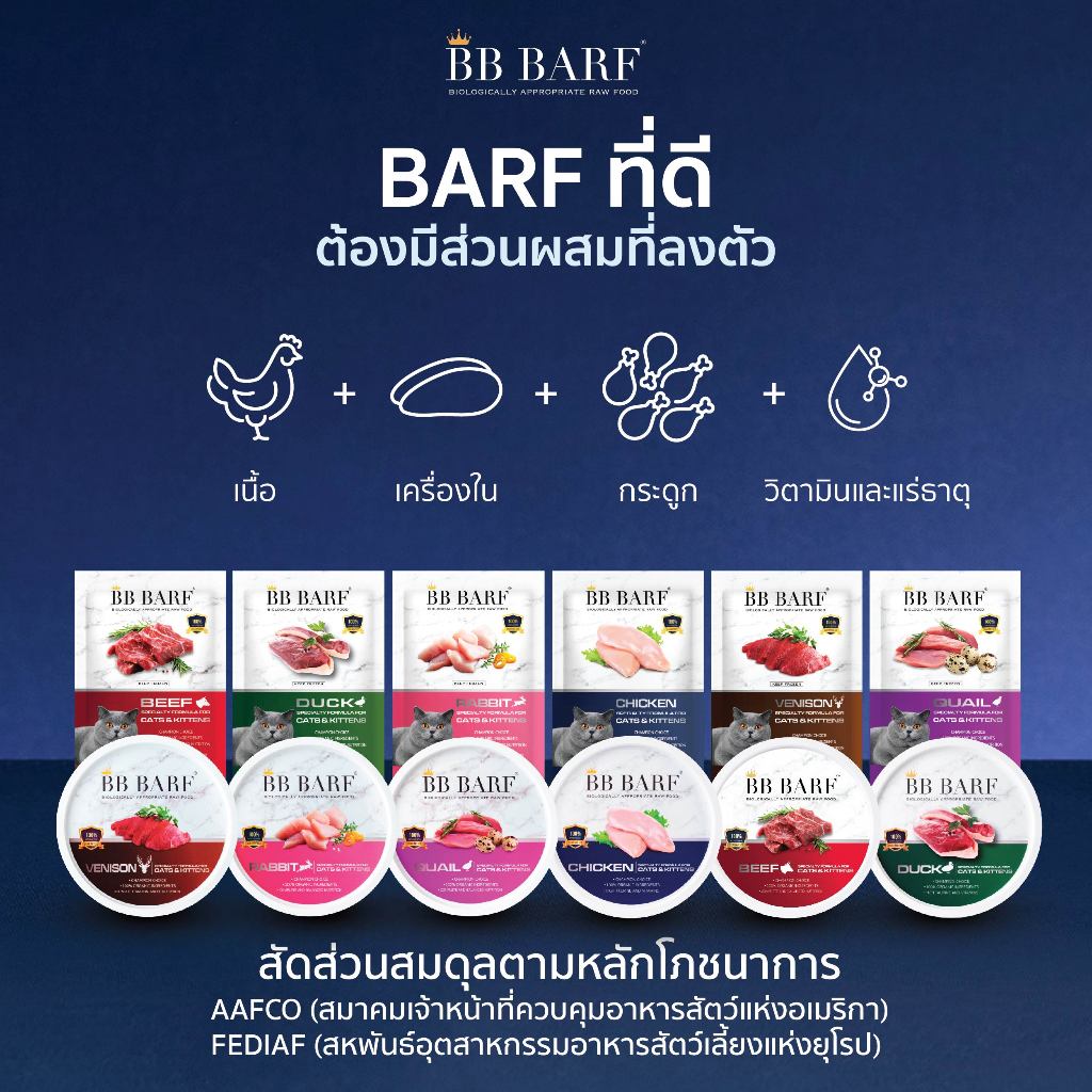บาร์ฟแมว สูตรกระต่าย กวาง นกกระทา เนื้อวัว อาหารแมว บีบี บาร์ฟ BB BARF อาหารสดดิบแช่แข็งแมว 12กระปุก