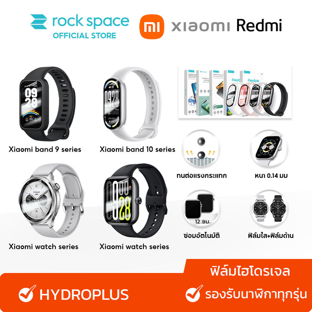 6*ชิ้น /rock space ฟิล์ม Xiaomi Band 10/9 /ฟิล์ม Xiaomi Watch S4 /ฟิล์ม Redmi Watch 5 /ไฮโดรเจล /ป้องกันรอยนิ้วมือ