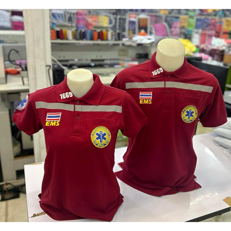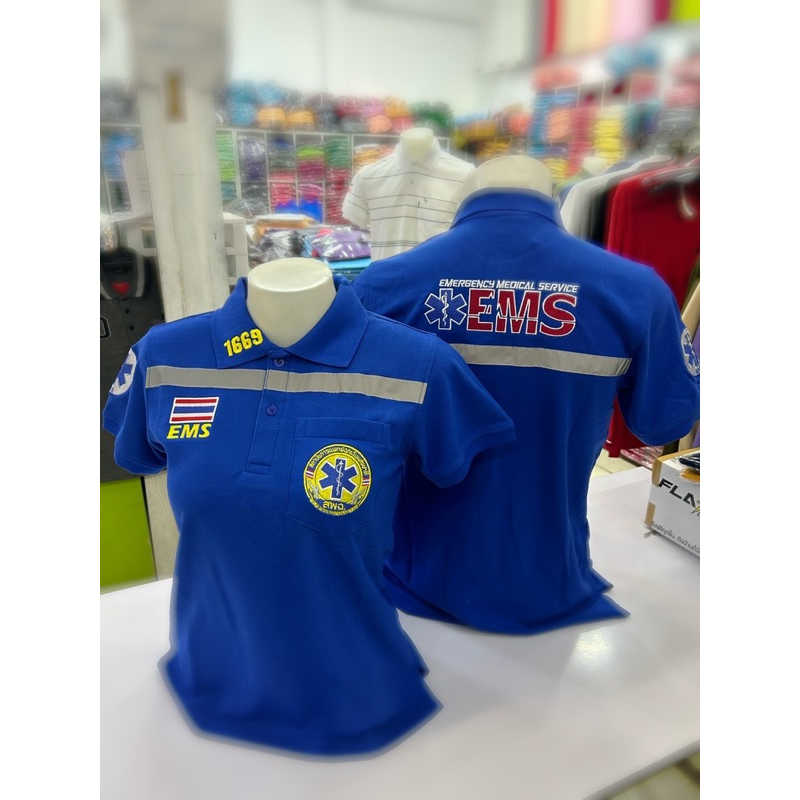 (แบรนด์แท้)เสื้อโปโล 1669 EMS ผ้าเกรดพรีเมี่ยม กู้ชีพ กู้ภัย แถบเรืองแสงหน้า-หลัง