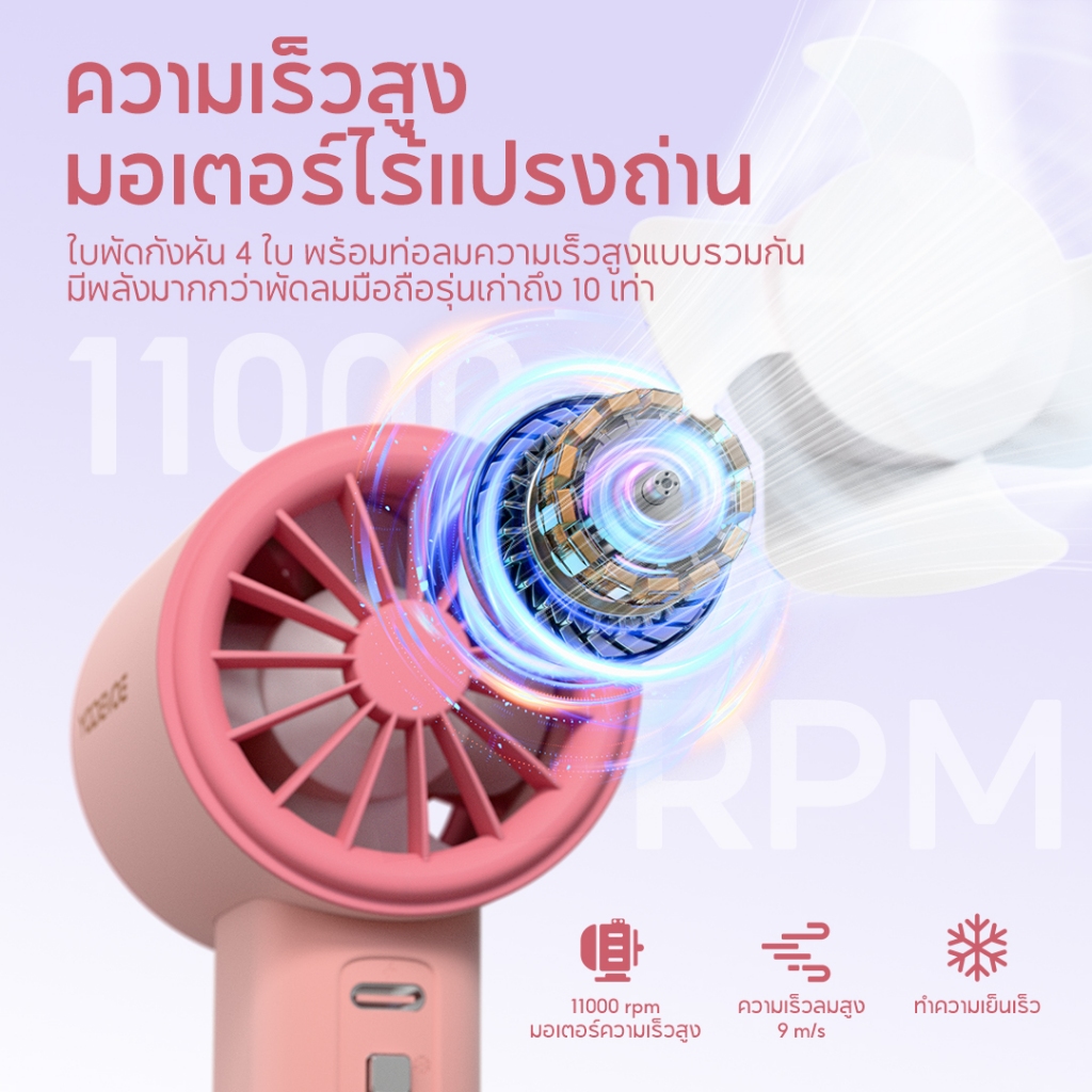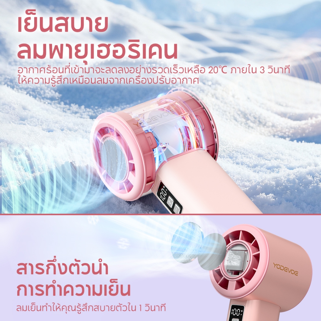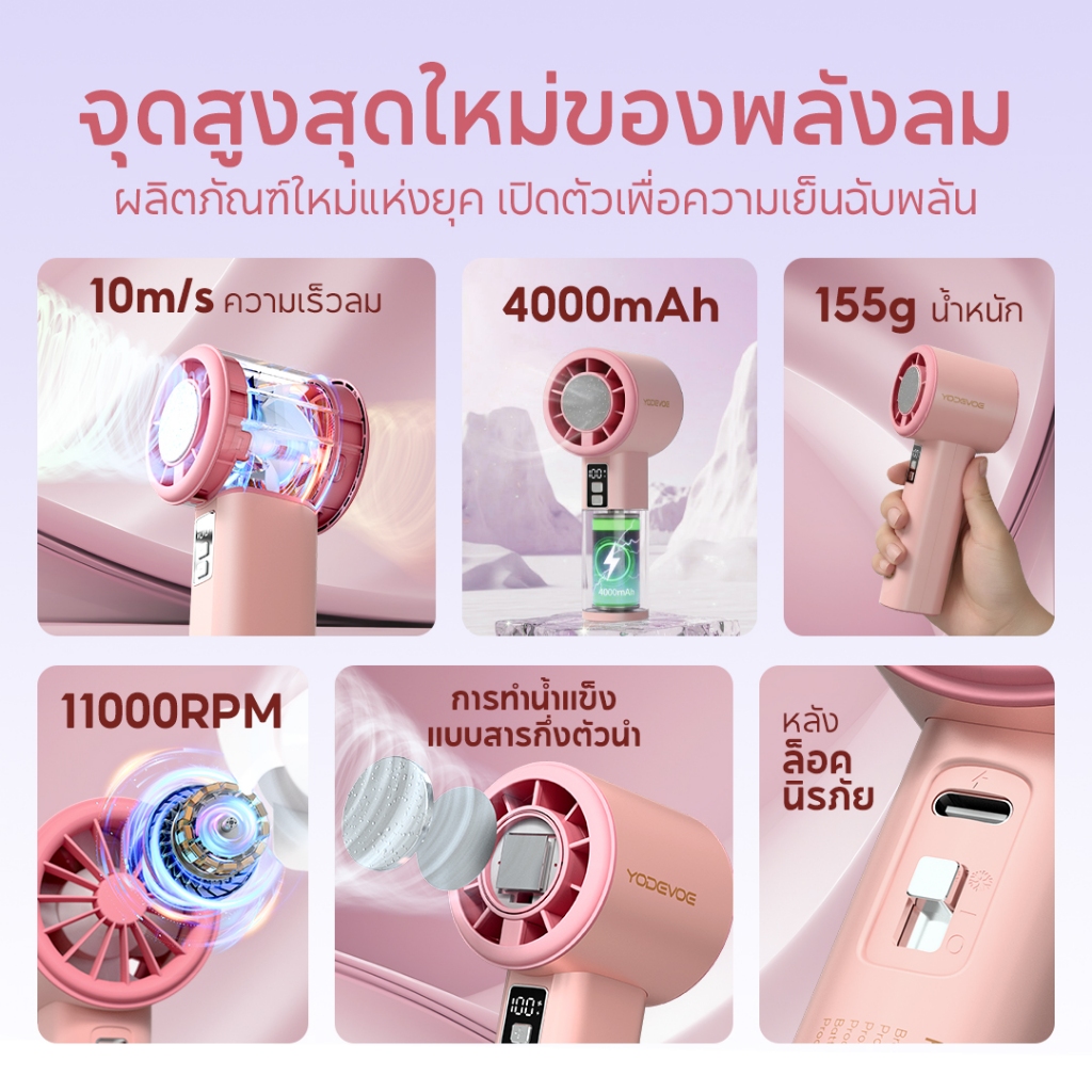 Yodevoe พัดลมมือถือ พัดลมพกพา พัดลมไอเย็นพกพา ขนาดเล็ก แบบพกพา ปรับระดับได้ 100 ระดับ 4000mAh พัดลมพกพา ไม่มีใบมีด ชาร์จใหม่ได้ ใช้งานได้ 18 ชม