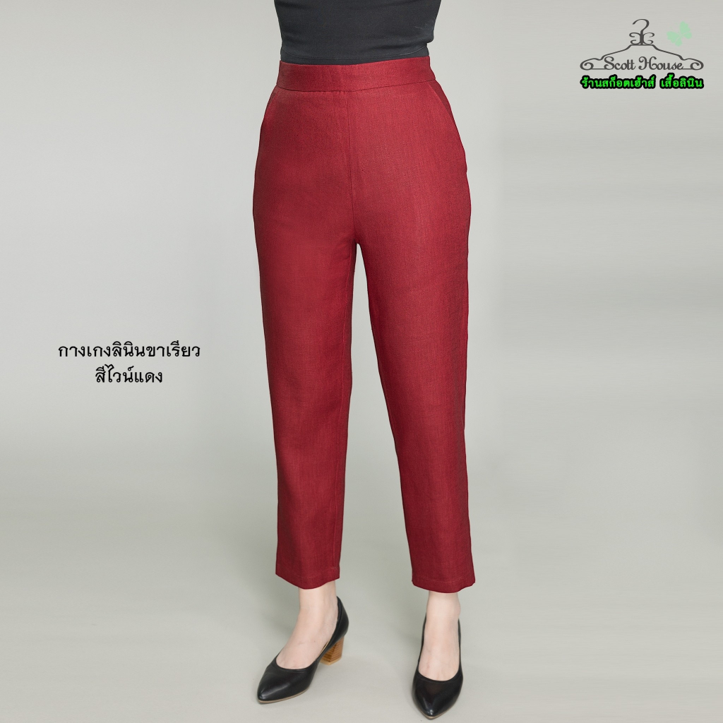 กางเกงลินินแท้100% รุ่นขาเรียว สีพื้น