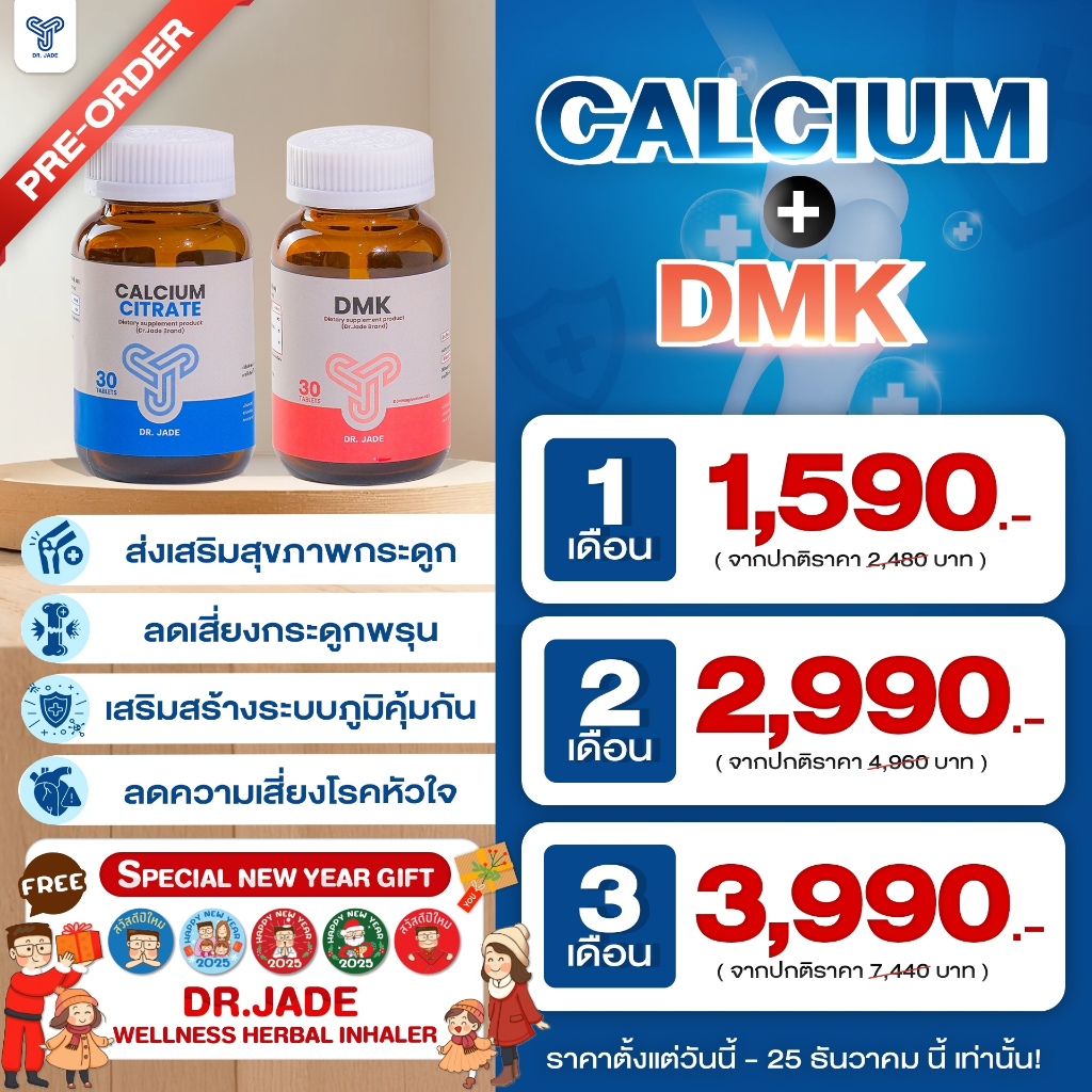VIKKASKINCARE : DR.JADE CALCIUM CITRATE แคลเซียม ซิเทรต 30 เม็ด + DR.JADE DMK (D3 + Magnesium + K2) 30 เม็ด