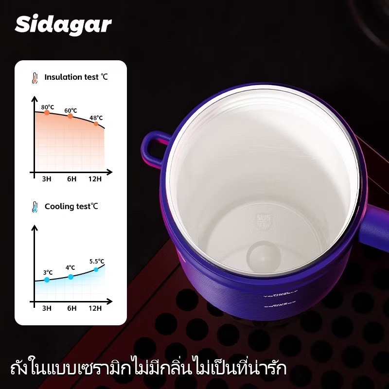 Sidagar 1000มล แก้วเก็บความเย็น สแตนเลส316+เซรามิกส์ ความจุขนาดใหญ่