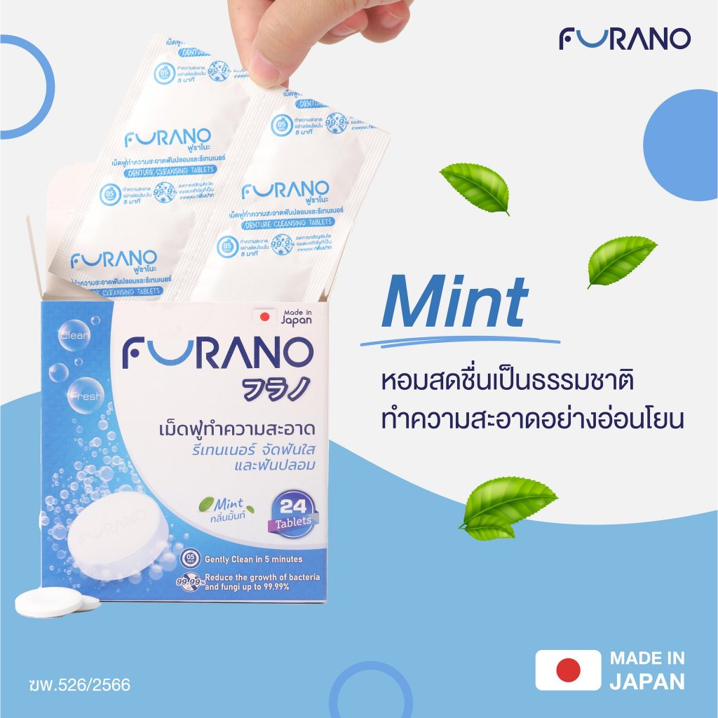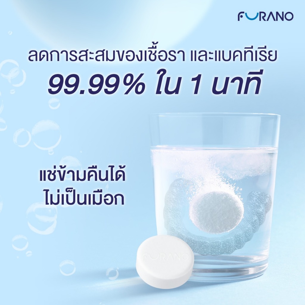 FURANO เม็ดฟู่ล้างรีเทนเนอร์ ฟันปลอม ขจัดคราบ กลิ่นสะอาด มี อย. ( 1 Box)