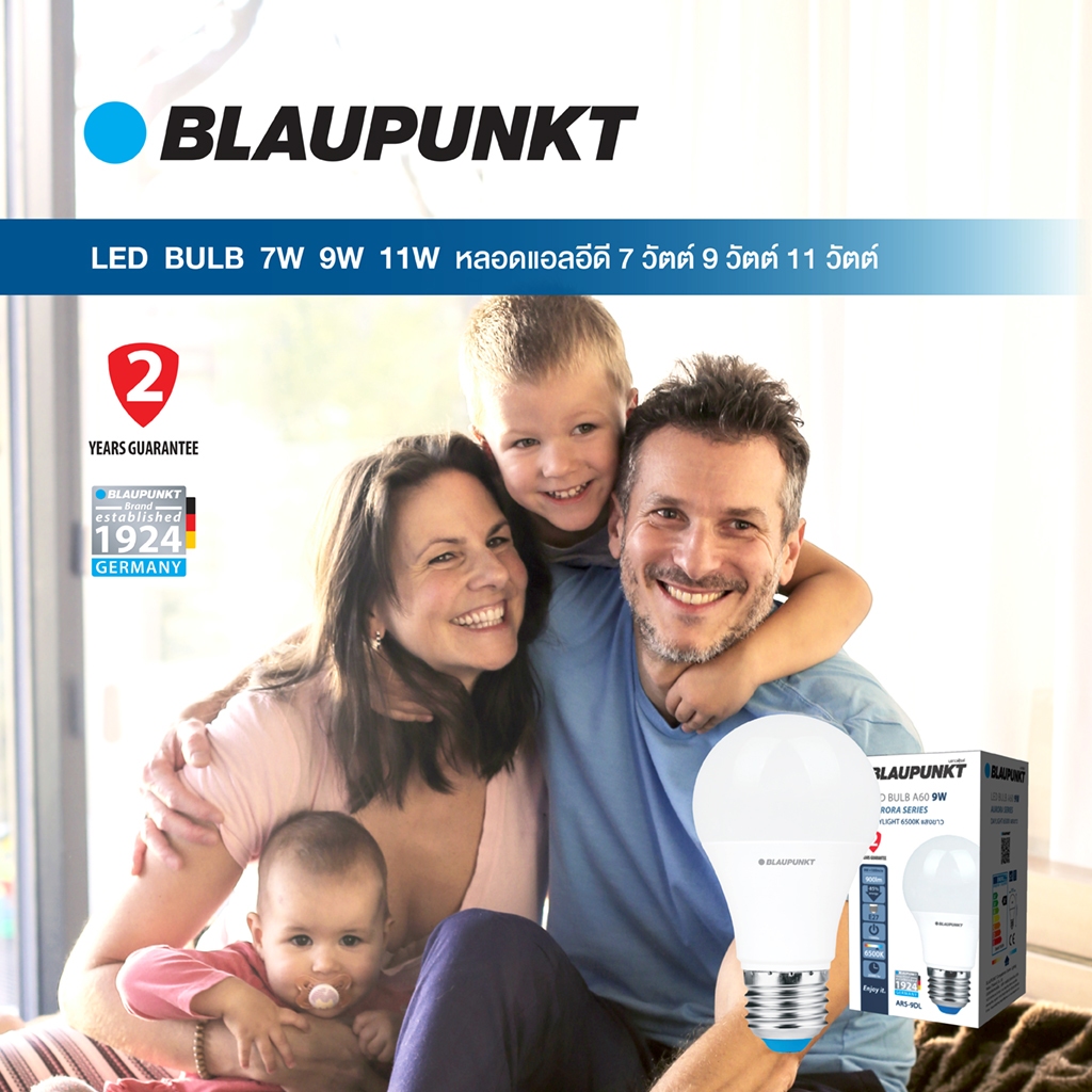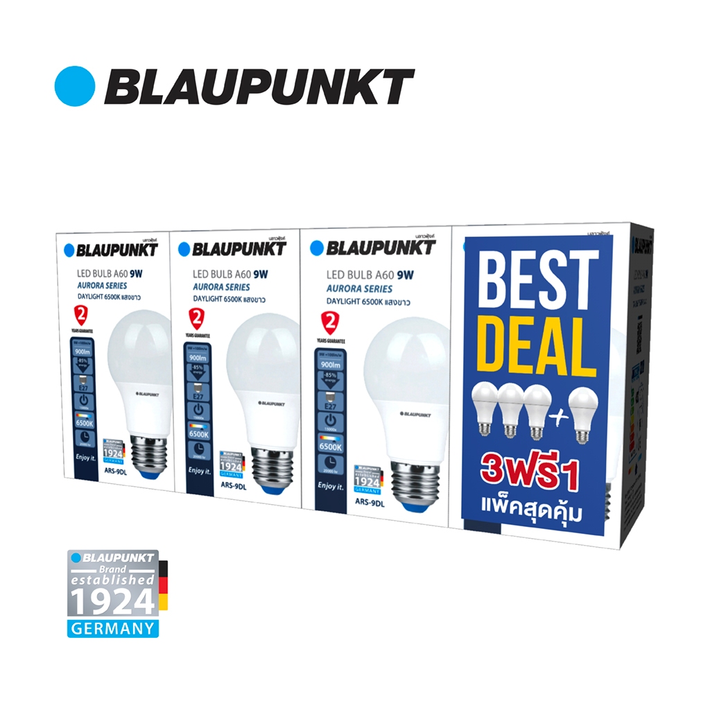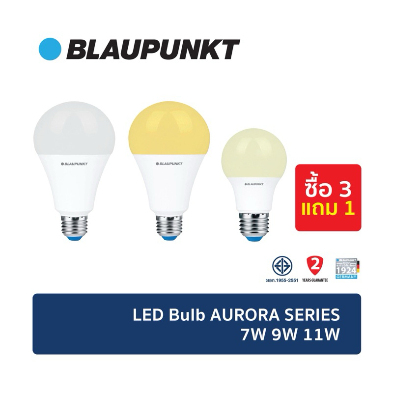 [3แถม1]BLAUPUNKT หลอดไฟมาตรฐานเยอรมัน แพ็คสุดคุ้ม 7W 9W 11W แสงขาว แสงวอร์ม แสงคูล LED Bulb ขั้ว E27
