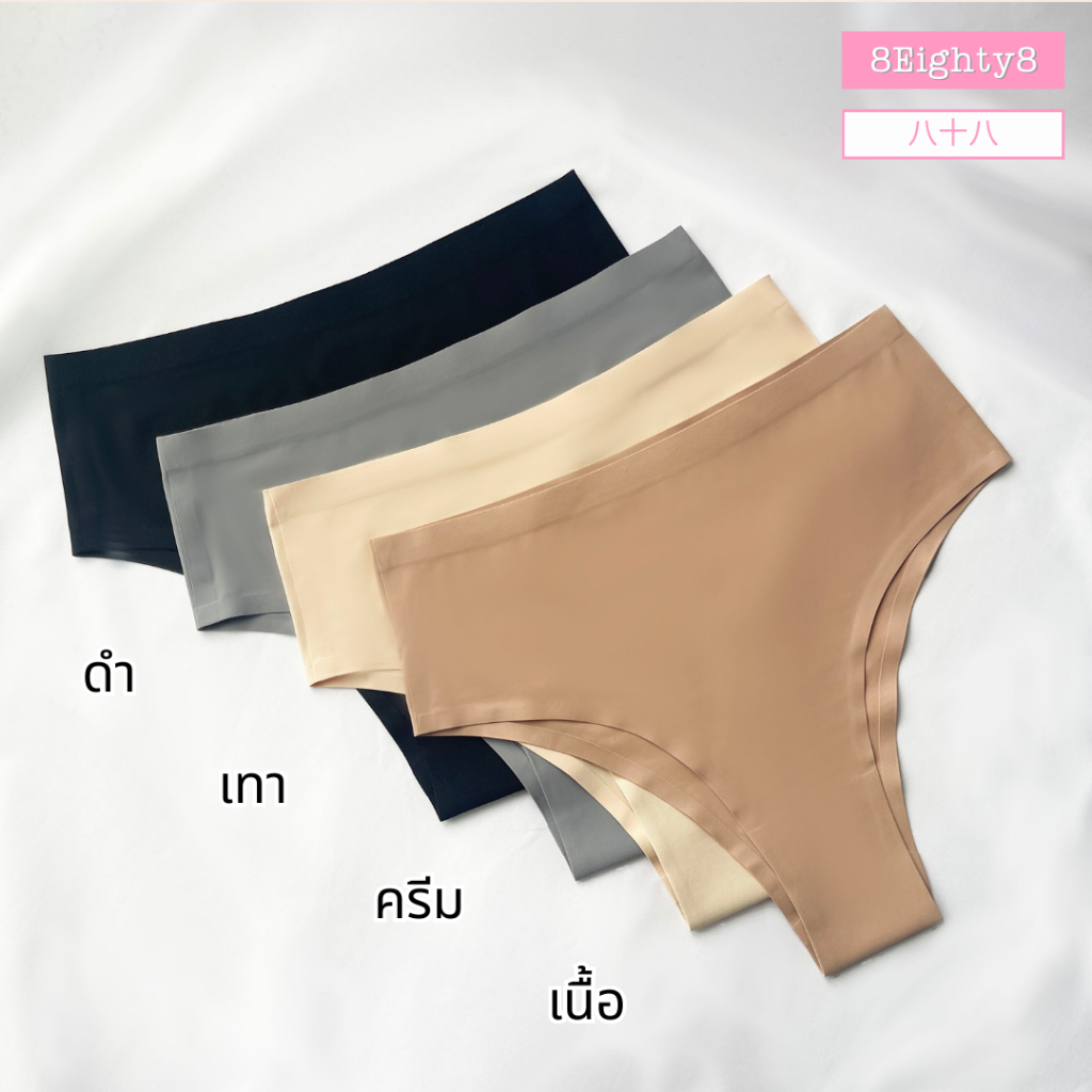 8EIGHTY8 กางเกงในผู้หญิงเอวสูง ทรงบิกินี่ Bikini เว้าสูง ผ้าลื่นใส่สบาย ไม่อับชื้น 4สี L/XL/XXL/3XL