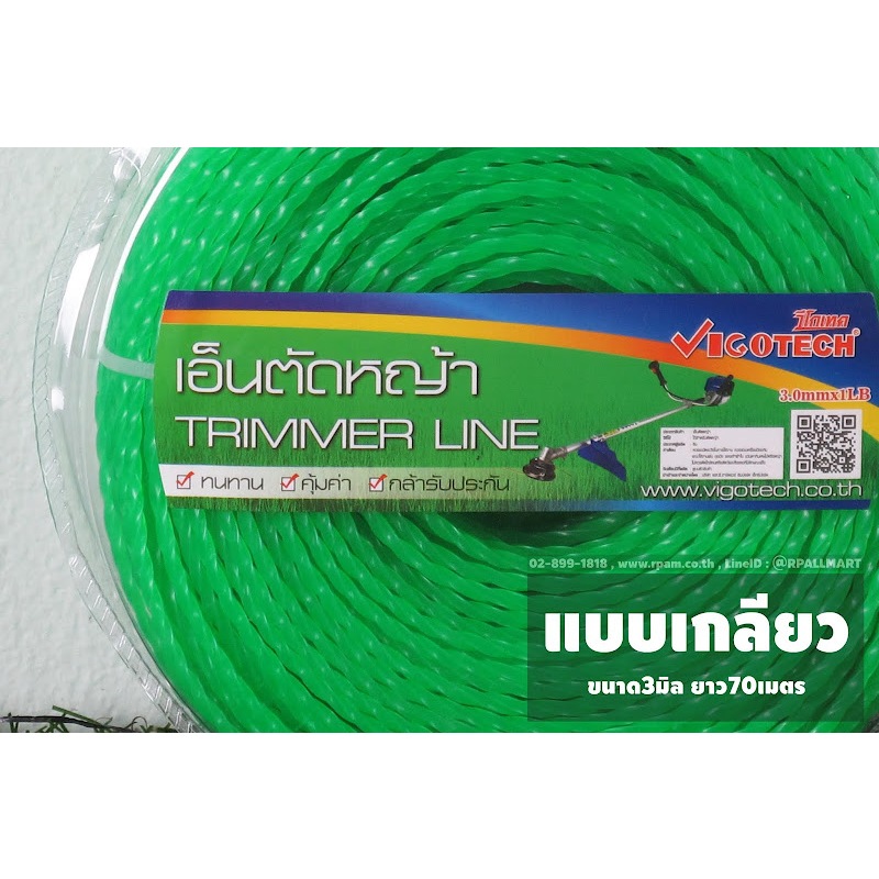 💥แท้ ส่งด่วน💥 VIGOTECH เอ็นตัดหญ้า แบบเกลียว 3 มิล 70 เมตร รุ่น VT-G30-70M 3mm. เอ็นเกลียว เอ็นตัดหญ้าแบบเกลียว เอ็น