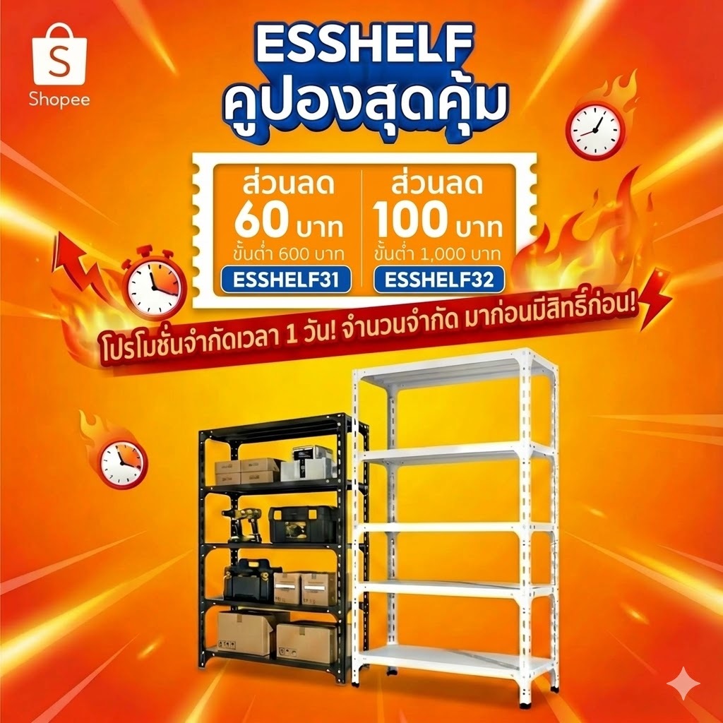 ESShelf ชั้นวางของ100cm 150cm 180cm วัสดุทำจากเหล็ก ม ใช้ได้ในบ้าน คลังสินค้า หรือโรงจอดรถ