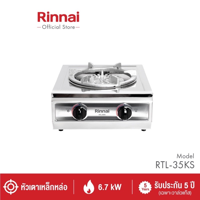 Rinnai เตาแก๊ส หัวเดี่ยวแบบตั้งโต๊ะ สแตนเลสทั้งตัว รุ่น RTL35KS