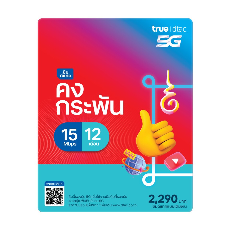 ซิมเทพ Dtac 5G ซิมเน็ตรายปี 15Mbps เดือนละ 100GB โทรฟรีทุกค่ายเดือนละ 60 นาที ใช้นาน1ปี ซิมคงกระพัน
